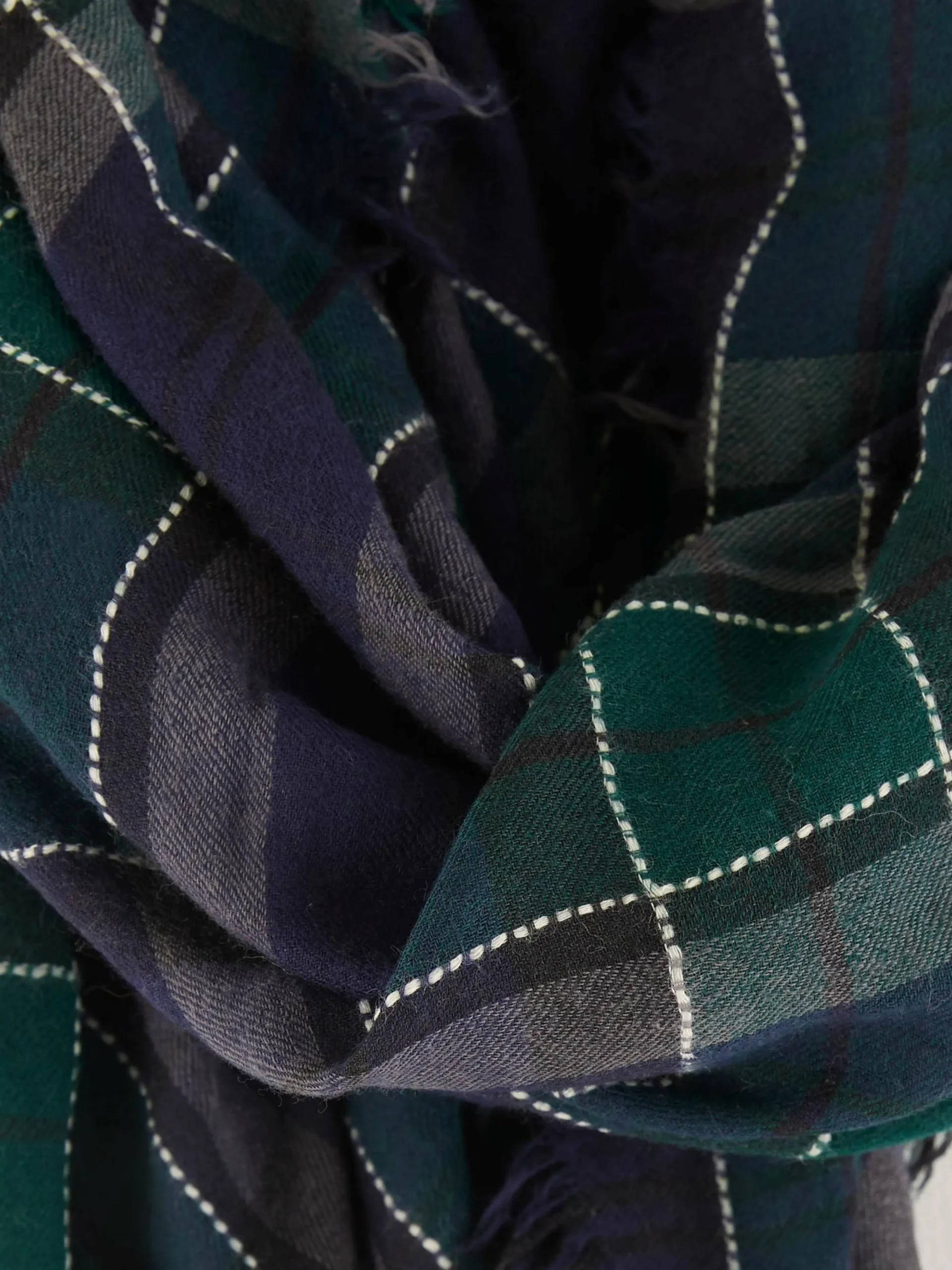 Geweven vierkante wollen sjaal met black watch ruiten.