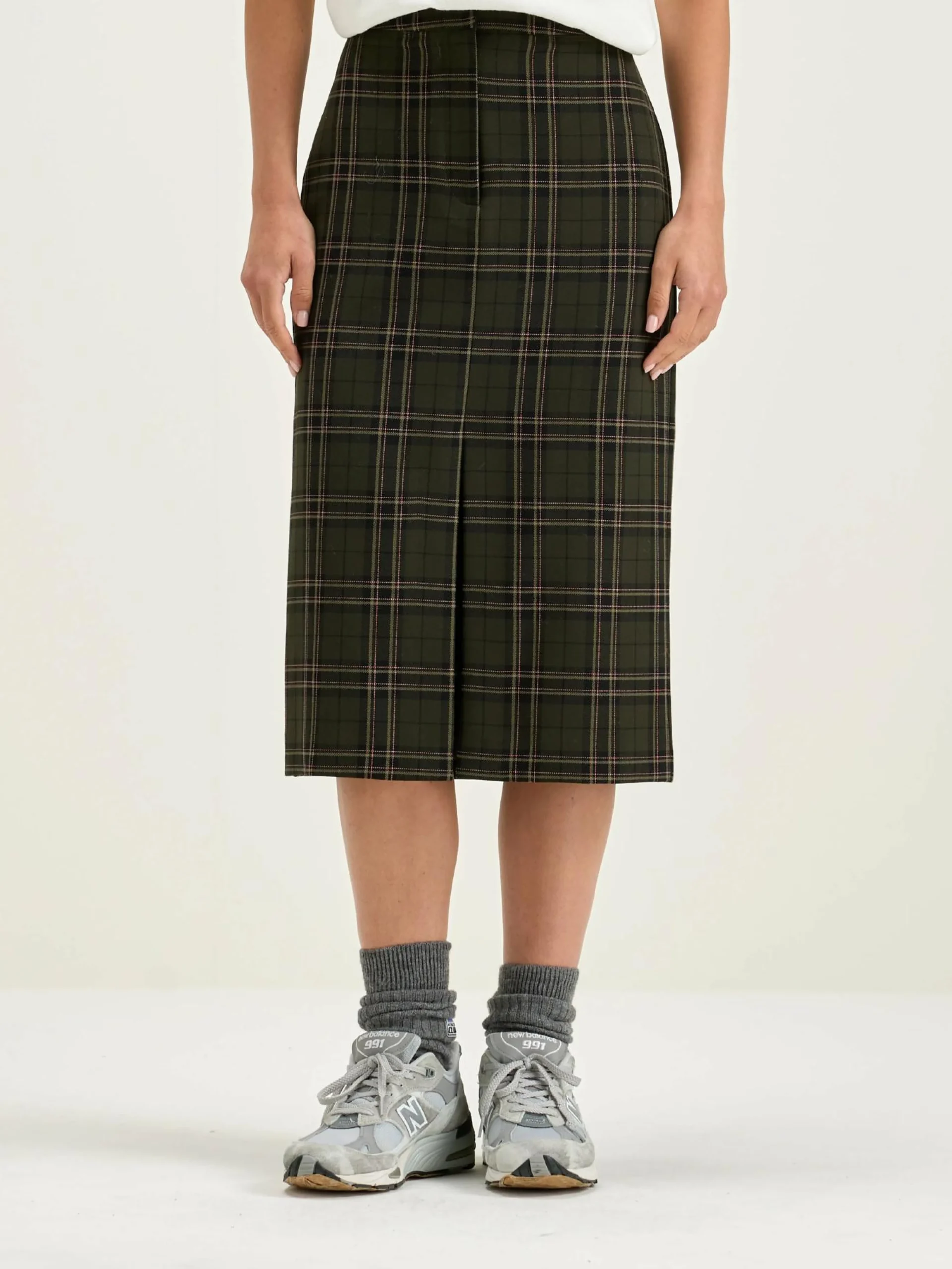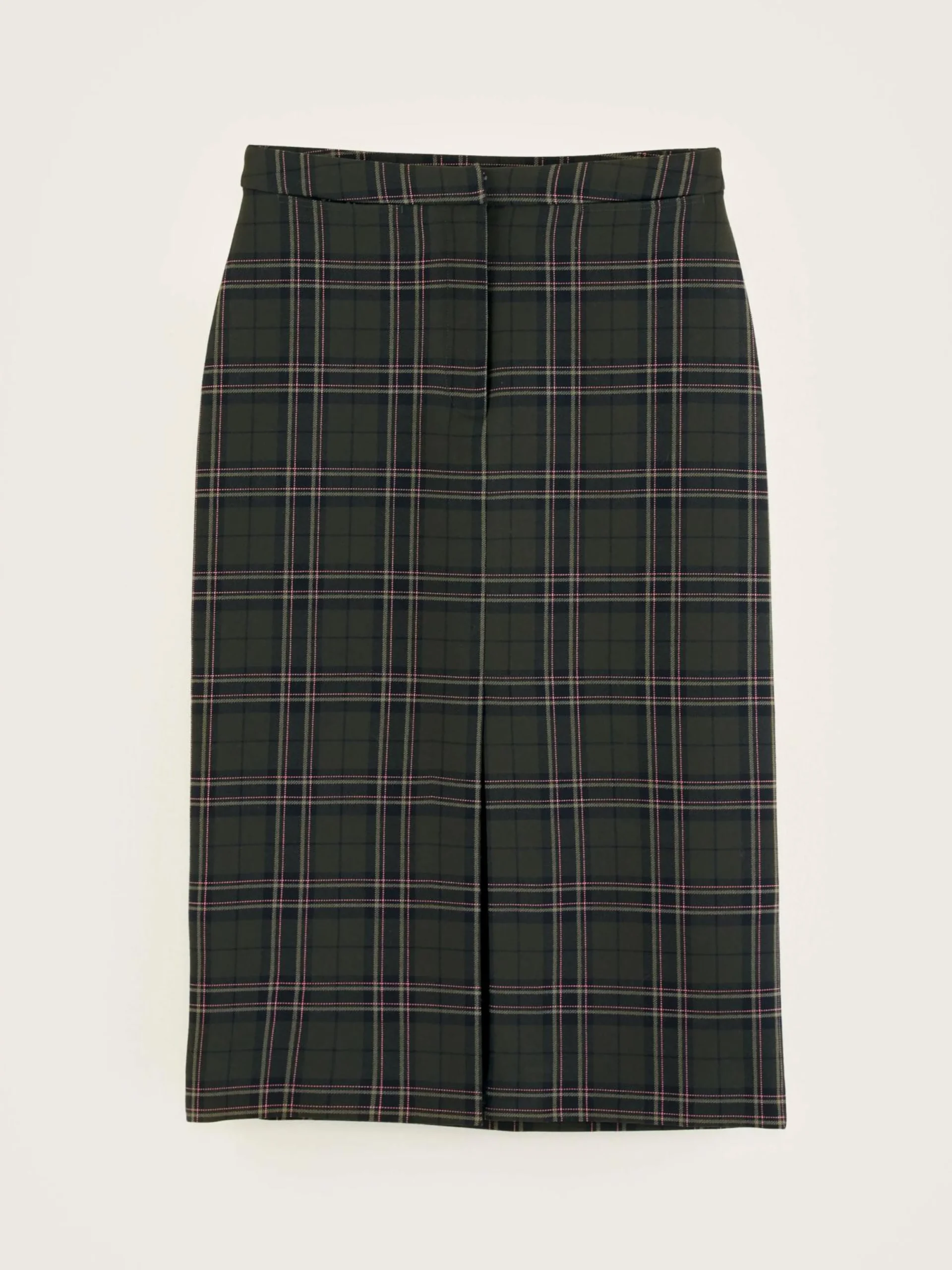 Geruite high-waist kokerrok met voorsplit en discrete zakken.