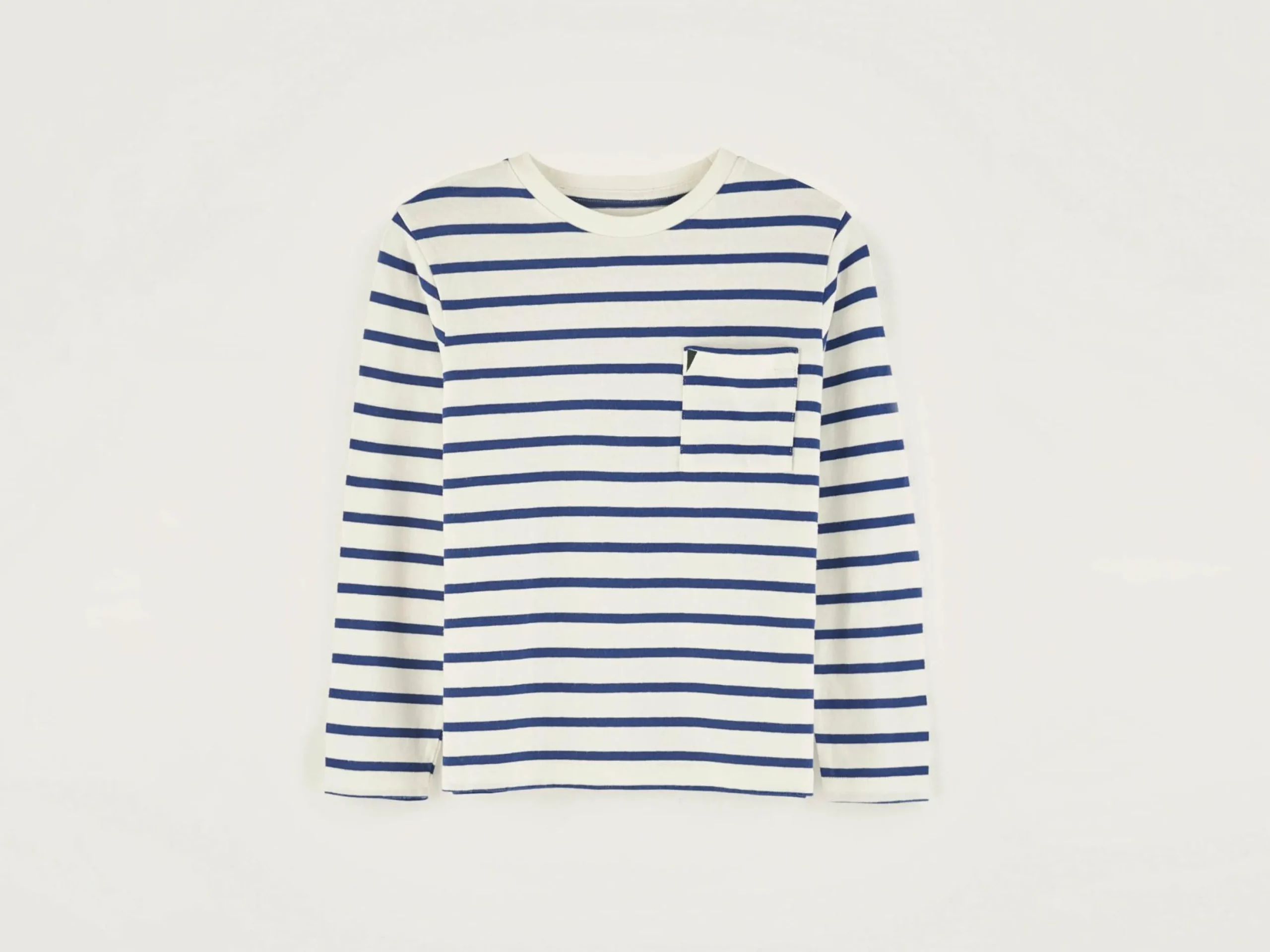 Comfortabel, recht T-shirt met lange mouwen en marinestrepen, van katoenjersey.