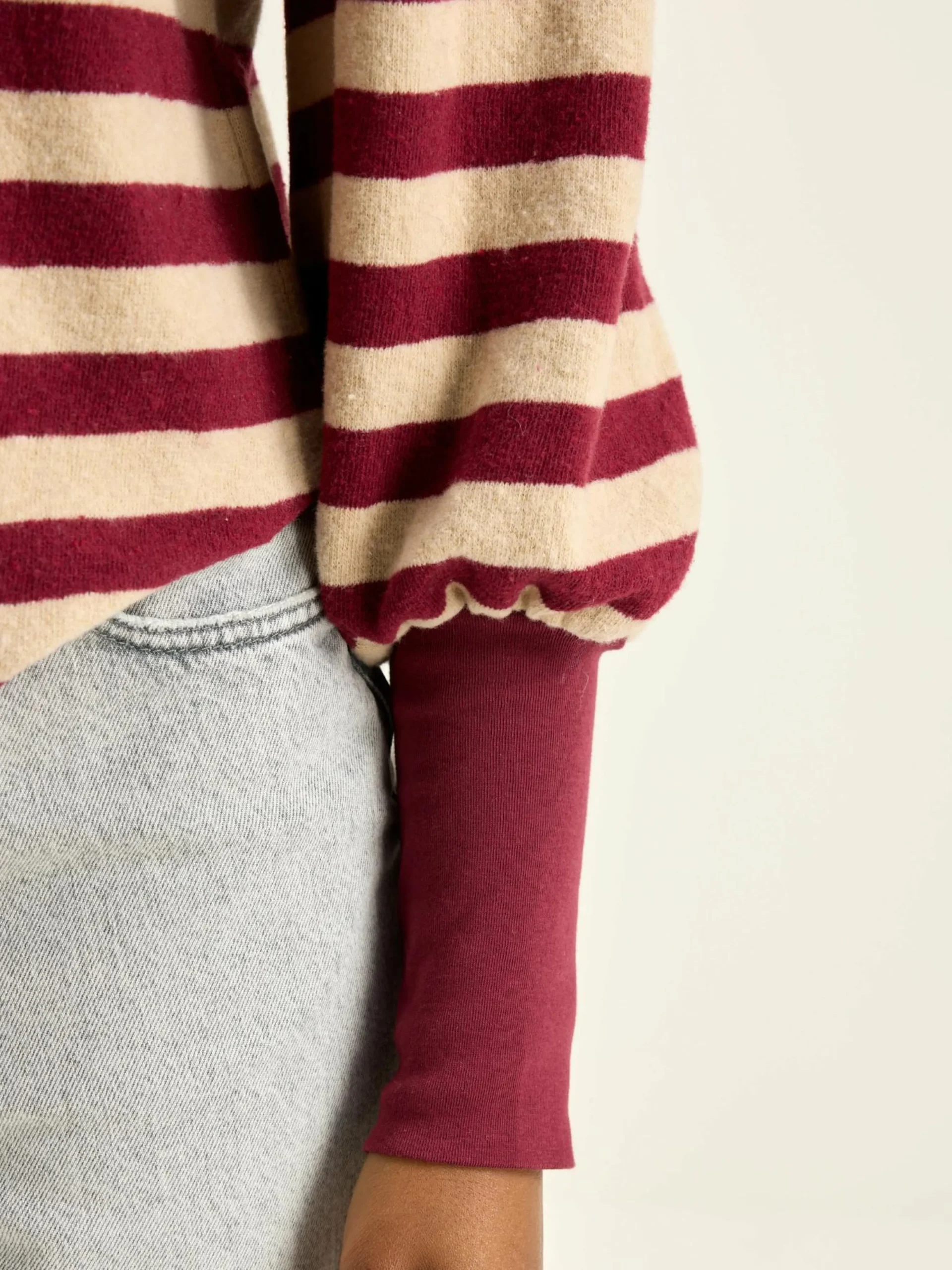 T-shirt met pofmouwen met aansluitende randen, van rood en wit gestreepte jersey.