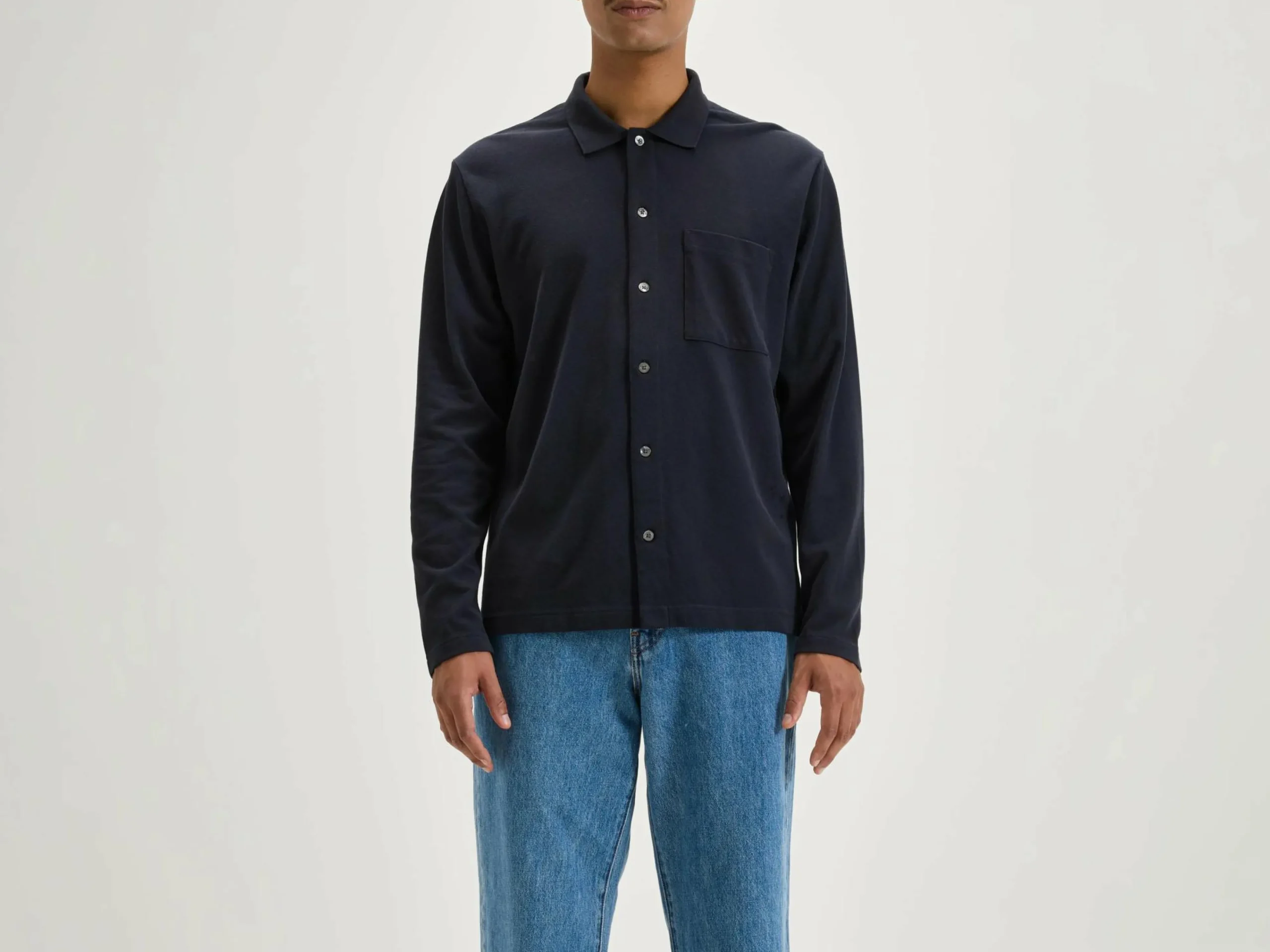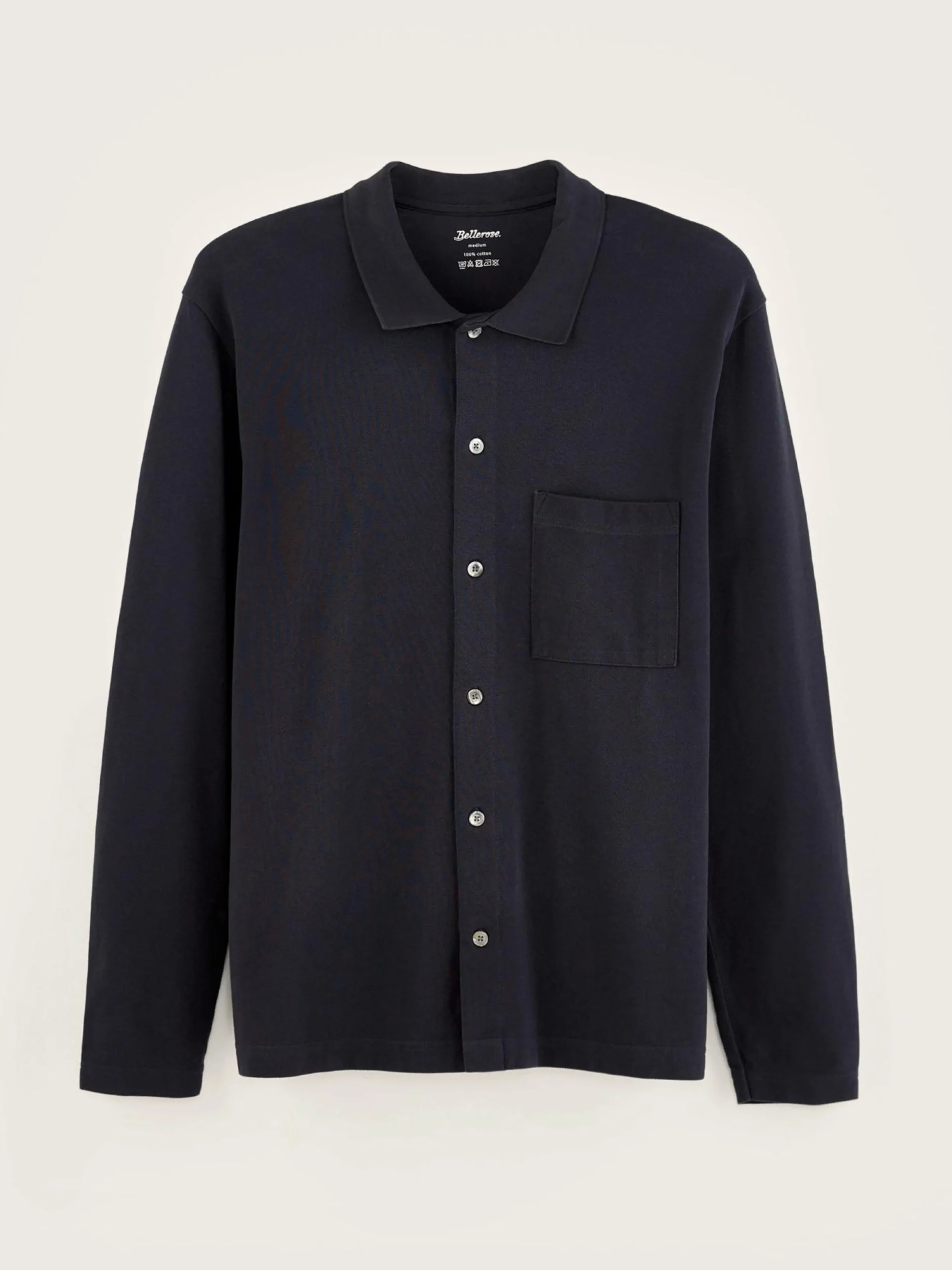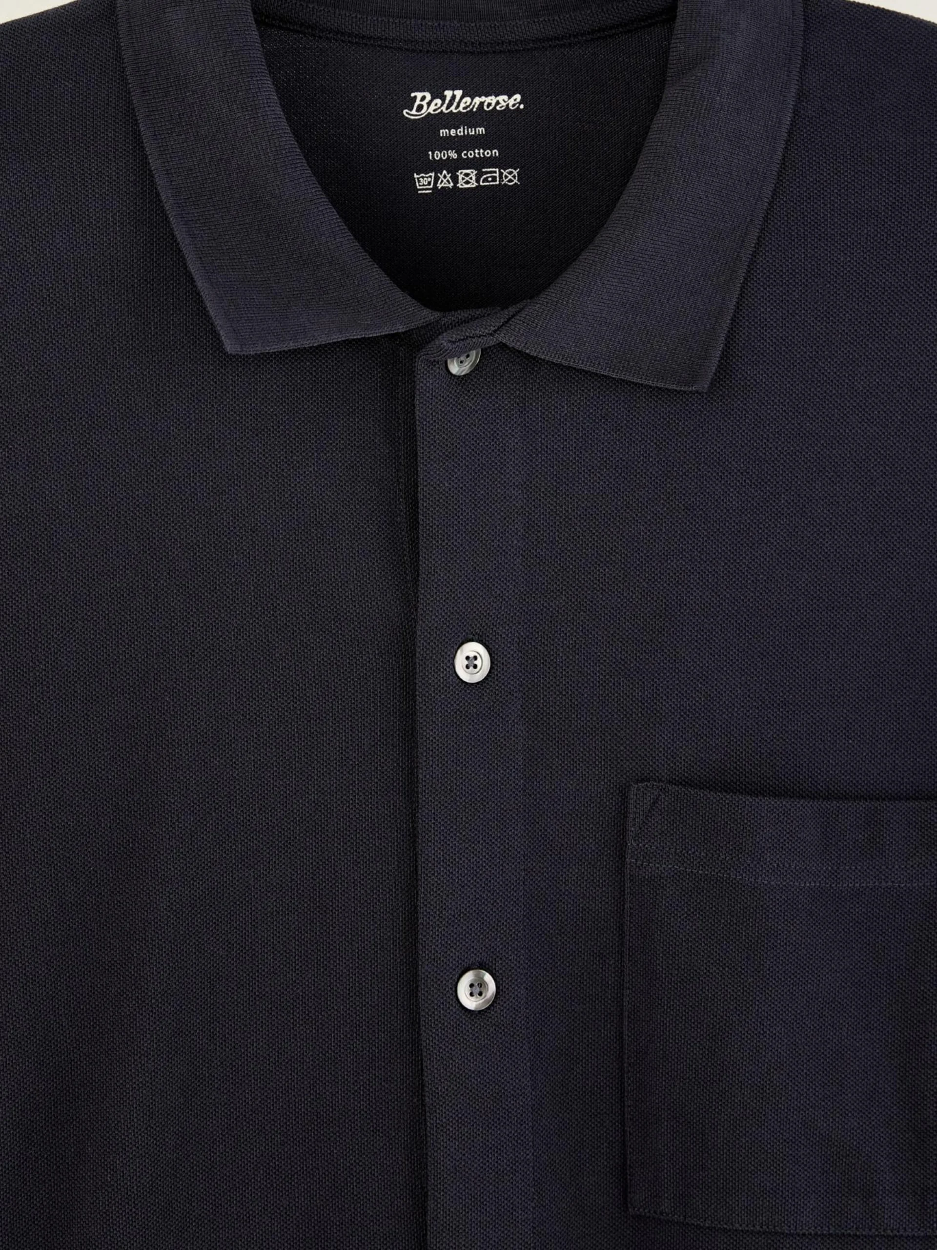 Relaxede polo met knoopsluiting in marineblauw katoen.