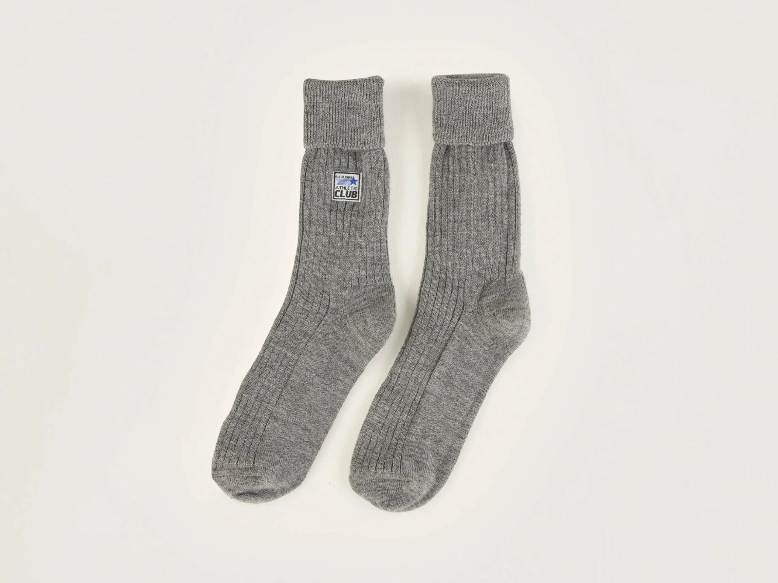 Geribde sokken met Bellerose Athletic Club-label, van grijze wolmix.