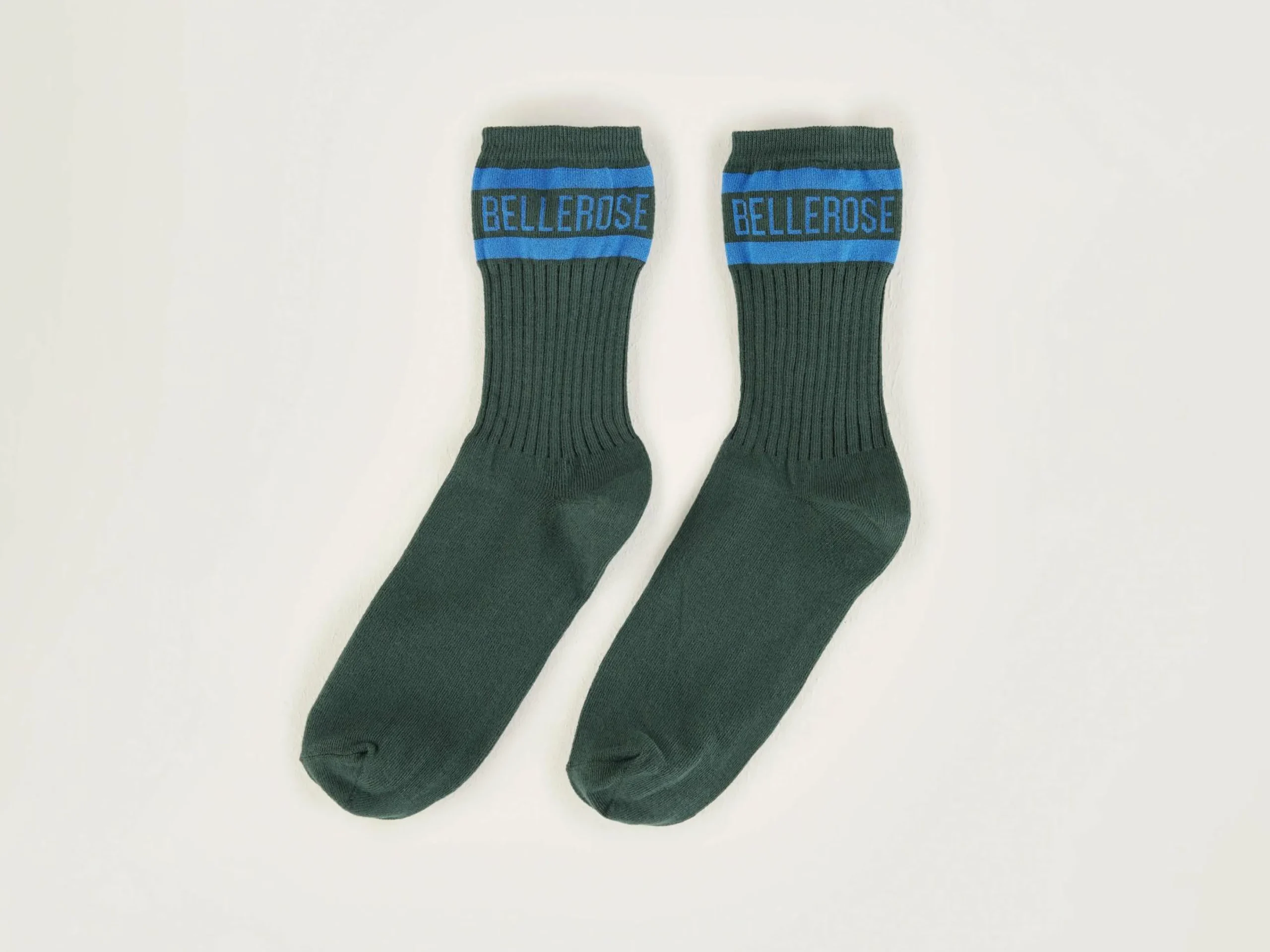 Klassieke sokken in groen met Bellerose-logo in blauw op de enkel.