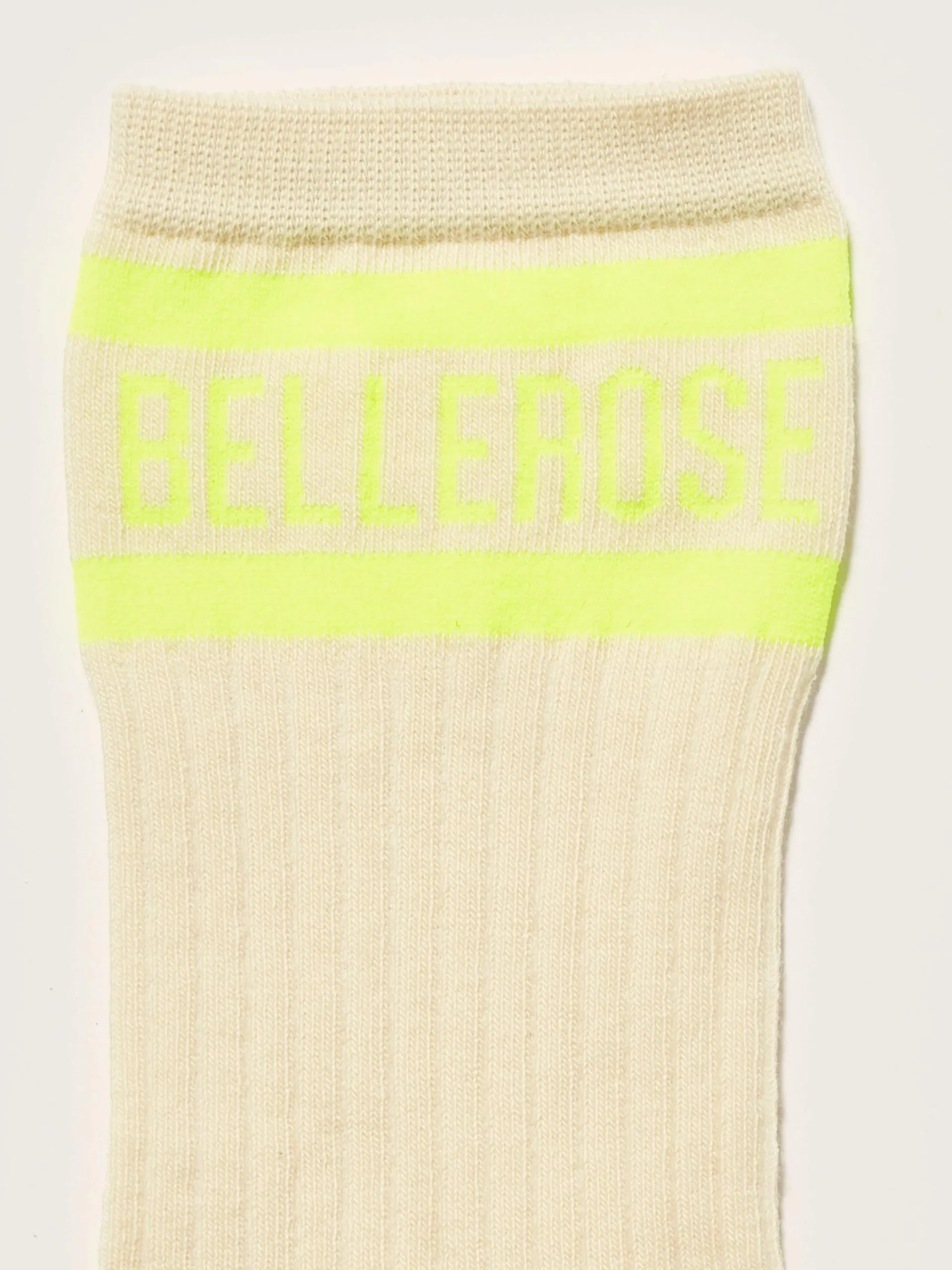 Klassieke, ivoorwitte sokken met geel Bellerose-logo ter hoogte van de enkels.
