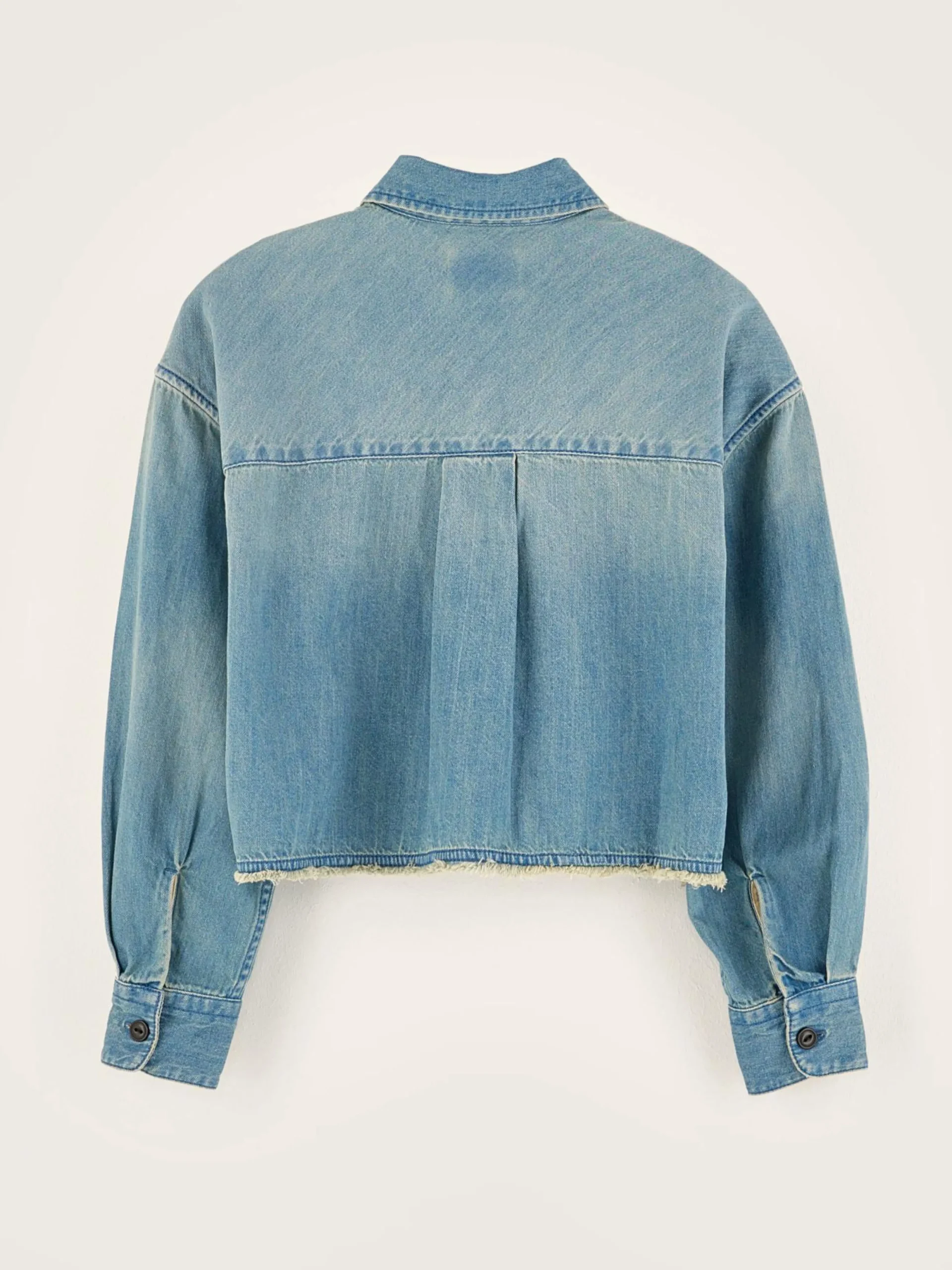 Recht, cropped overhemd van lichtblauw katoendenim.