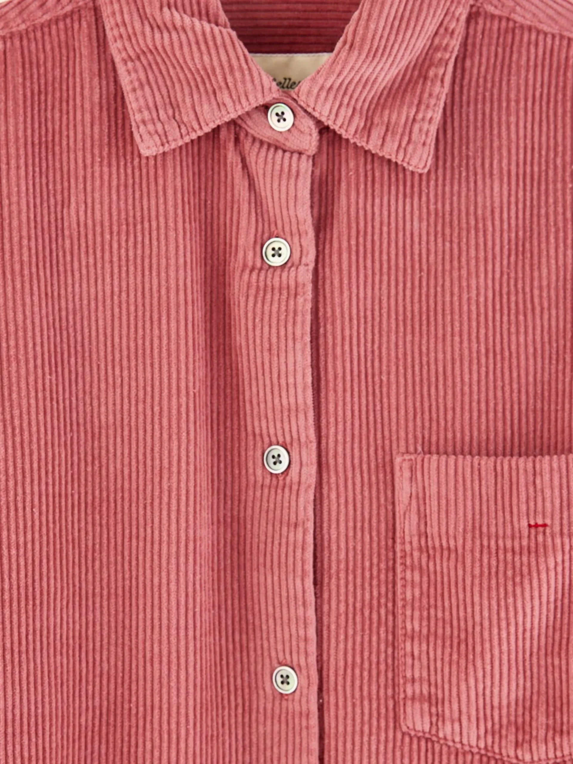 Korte jurk in hemdstijl, van rozekleurig katoenen corduroy.