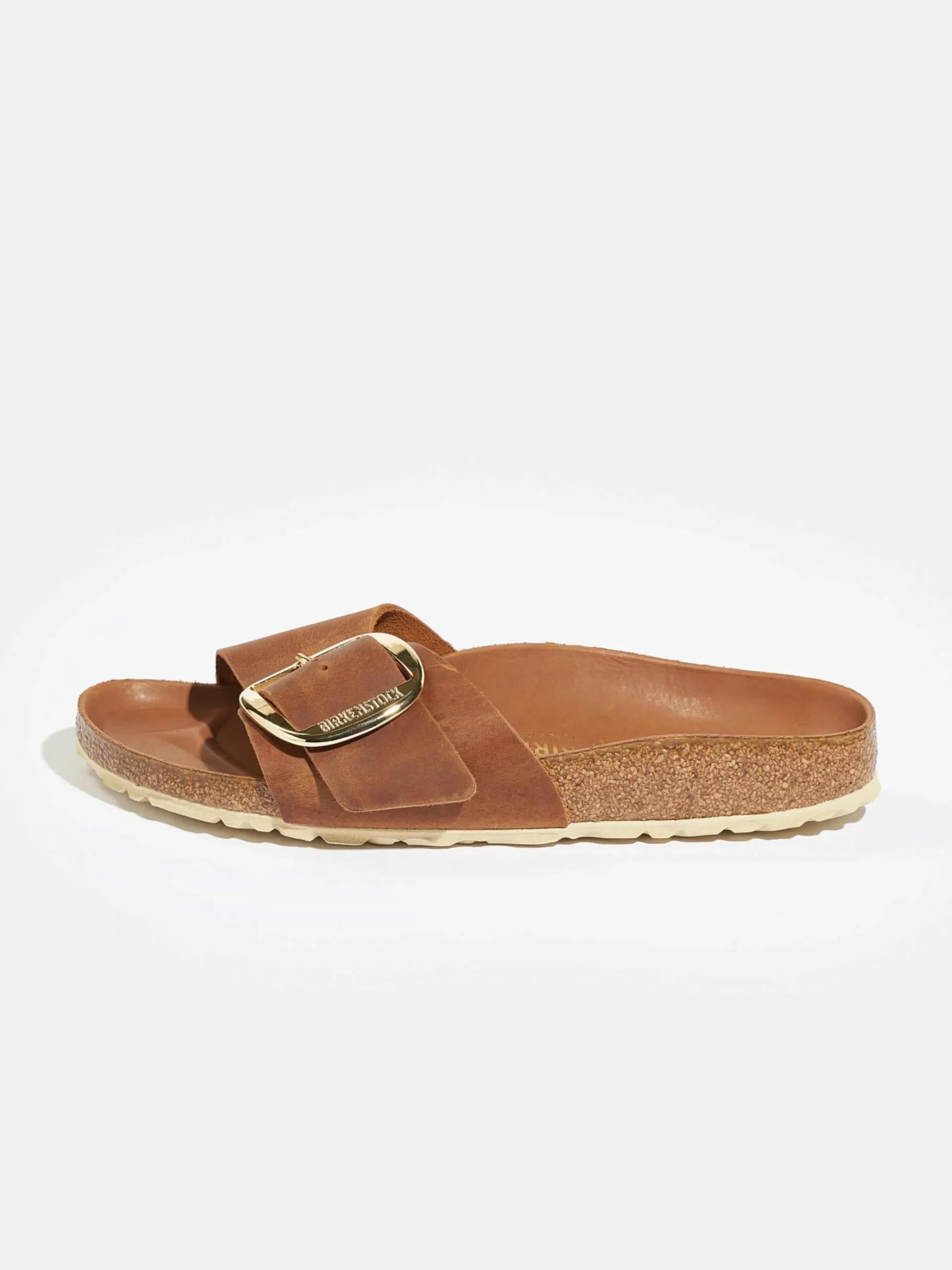 A strap, a buckle and a contoured cork footbed are masterfully combined to create the original Birkenstock sandal – the Madrid. An iconic slide with an amplified buckle accent.