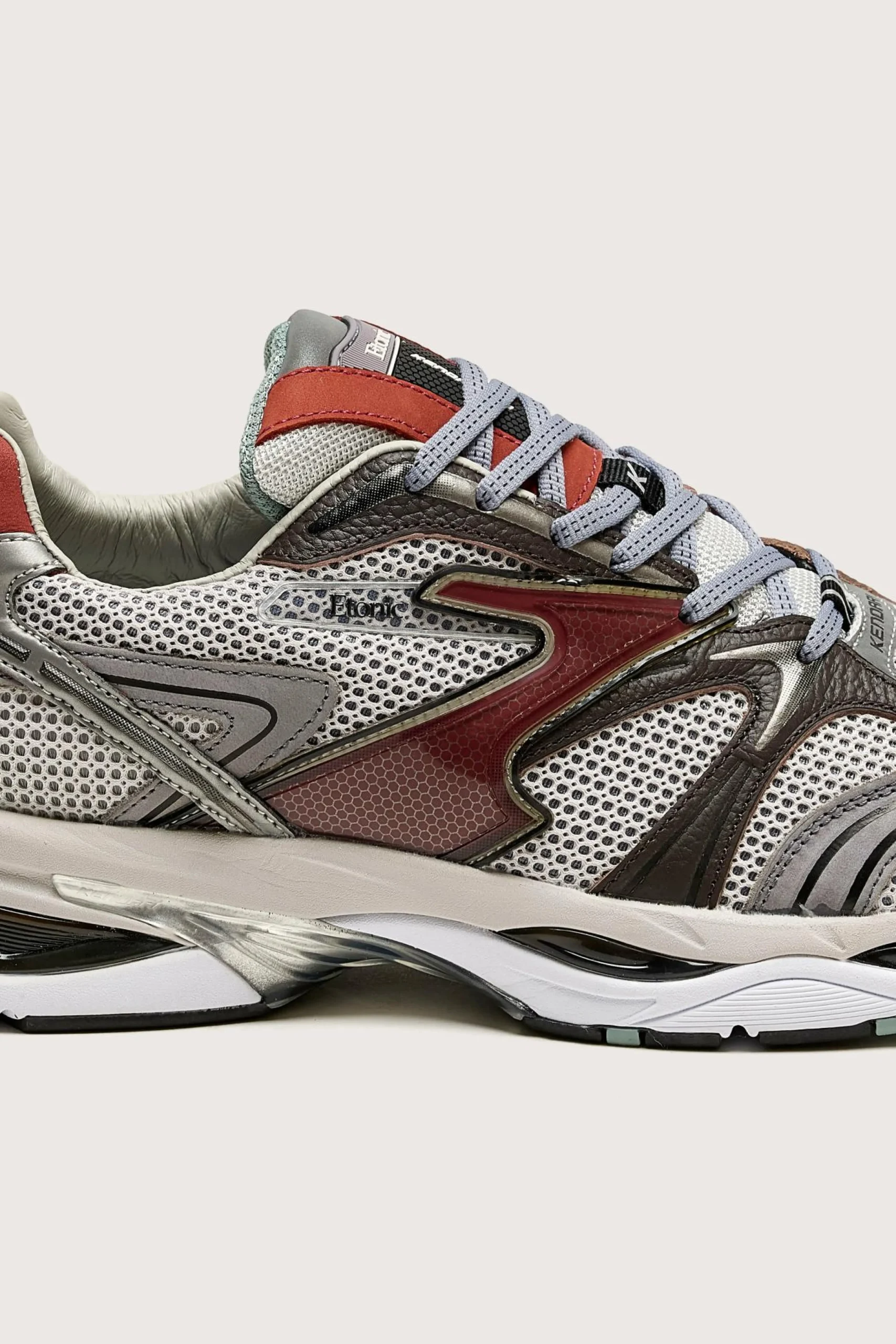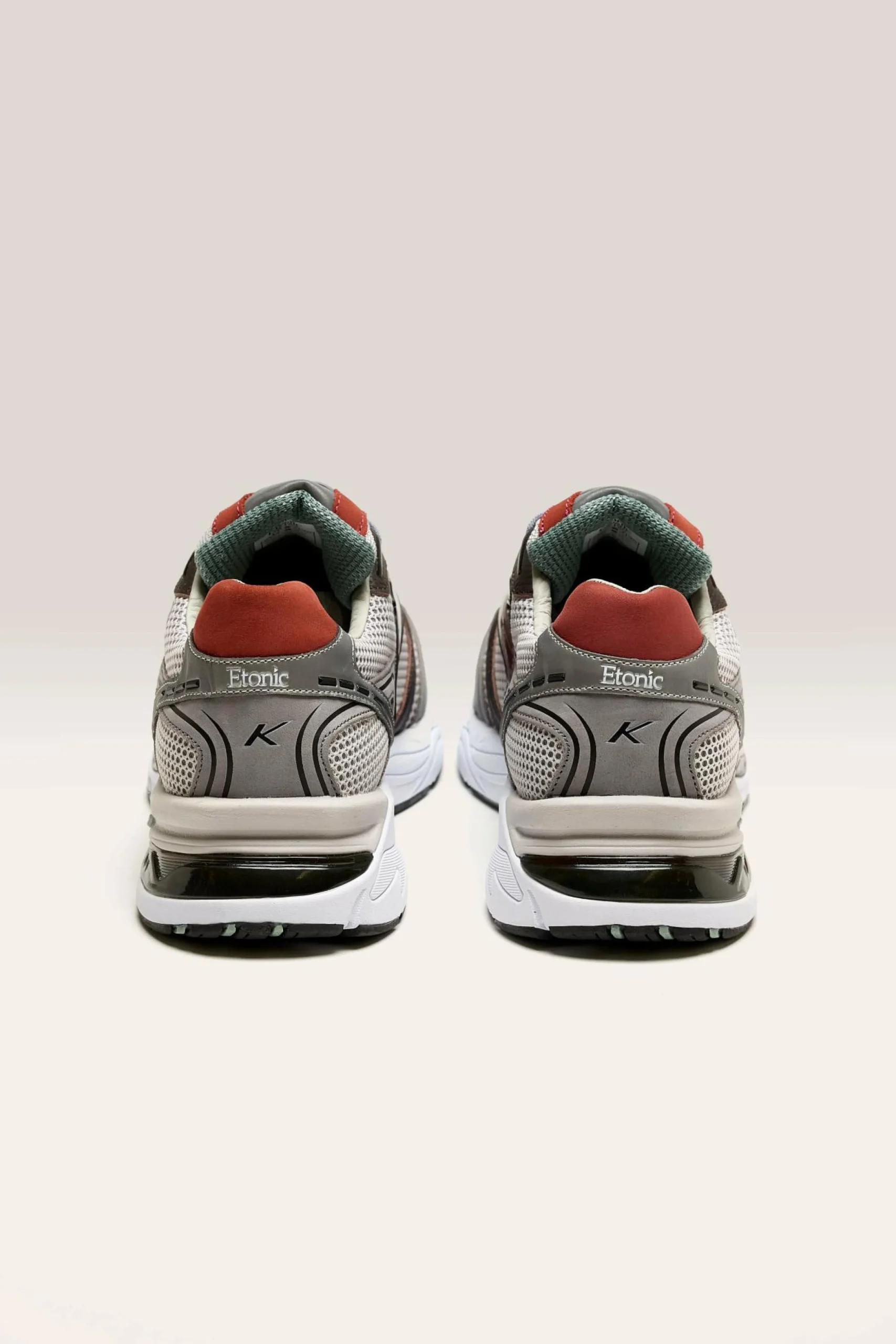 The Etonic Kendari Multi running sneaker features a technical textile and mesh upper with leather panels, tonal laces, and comfort details.