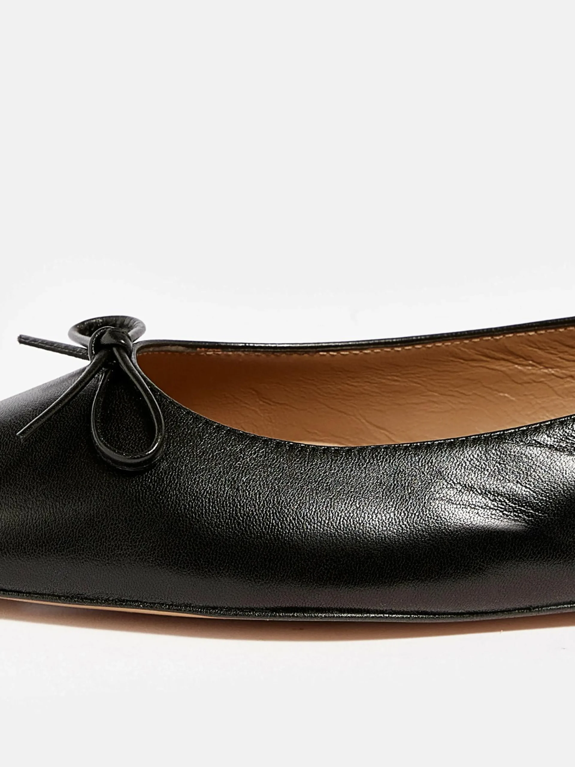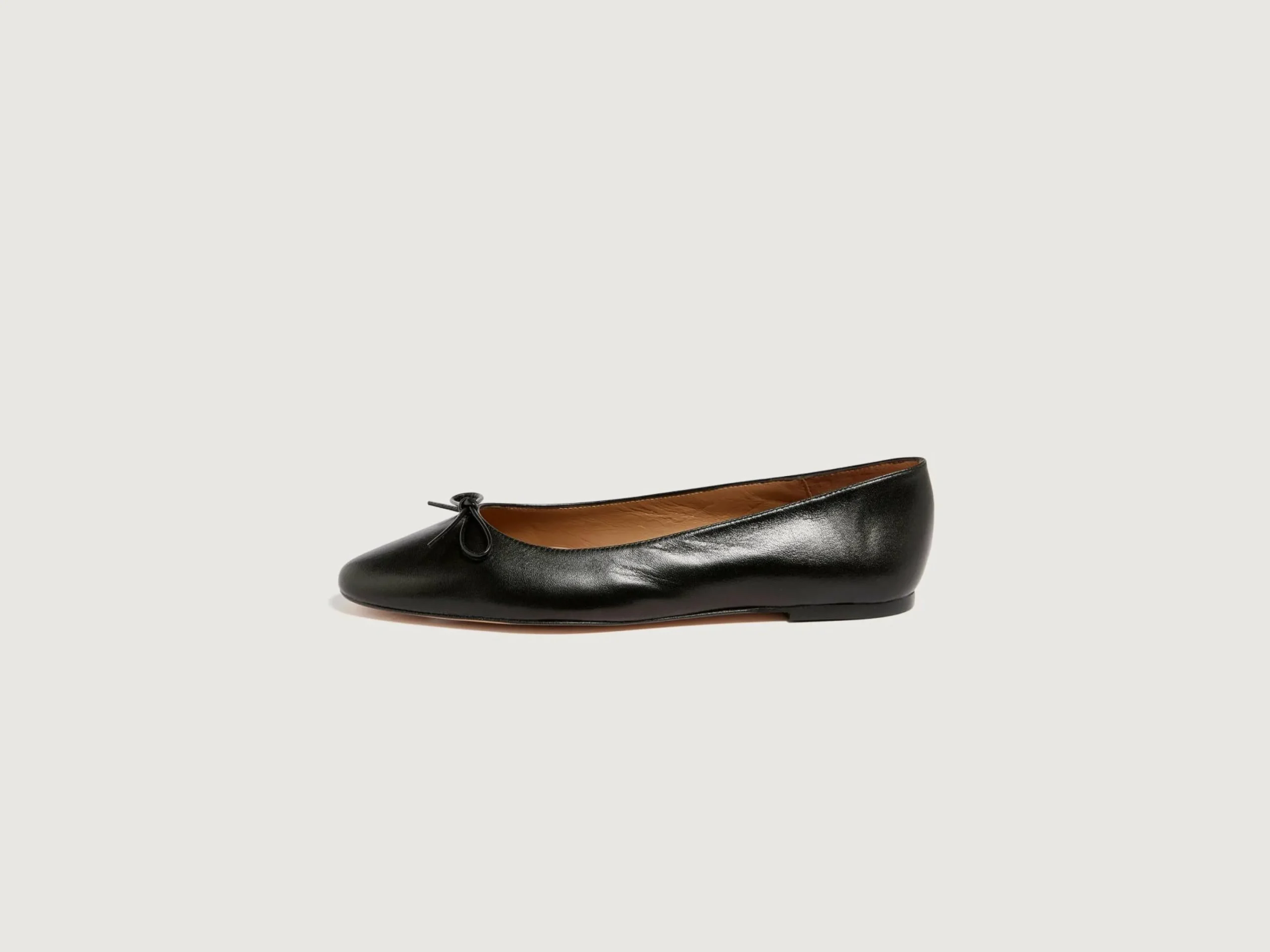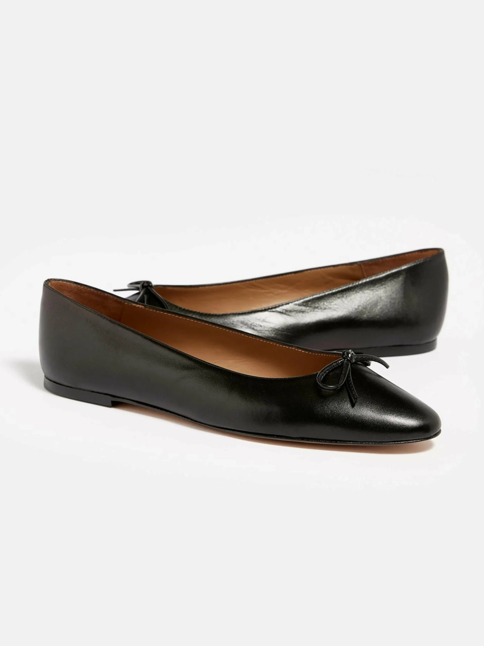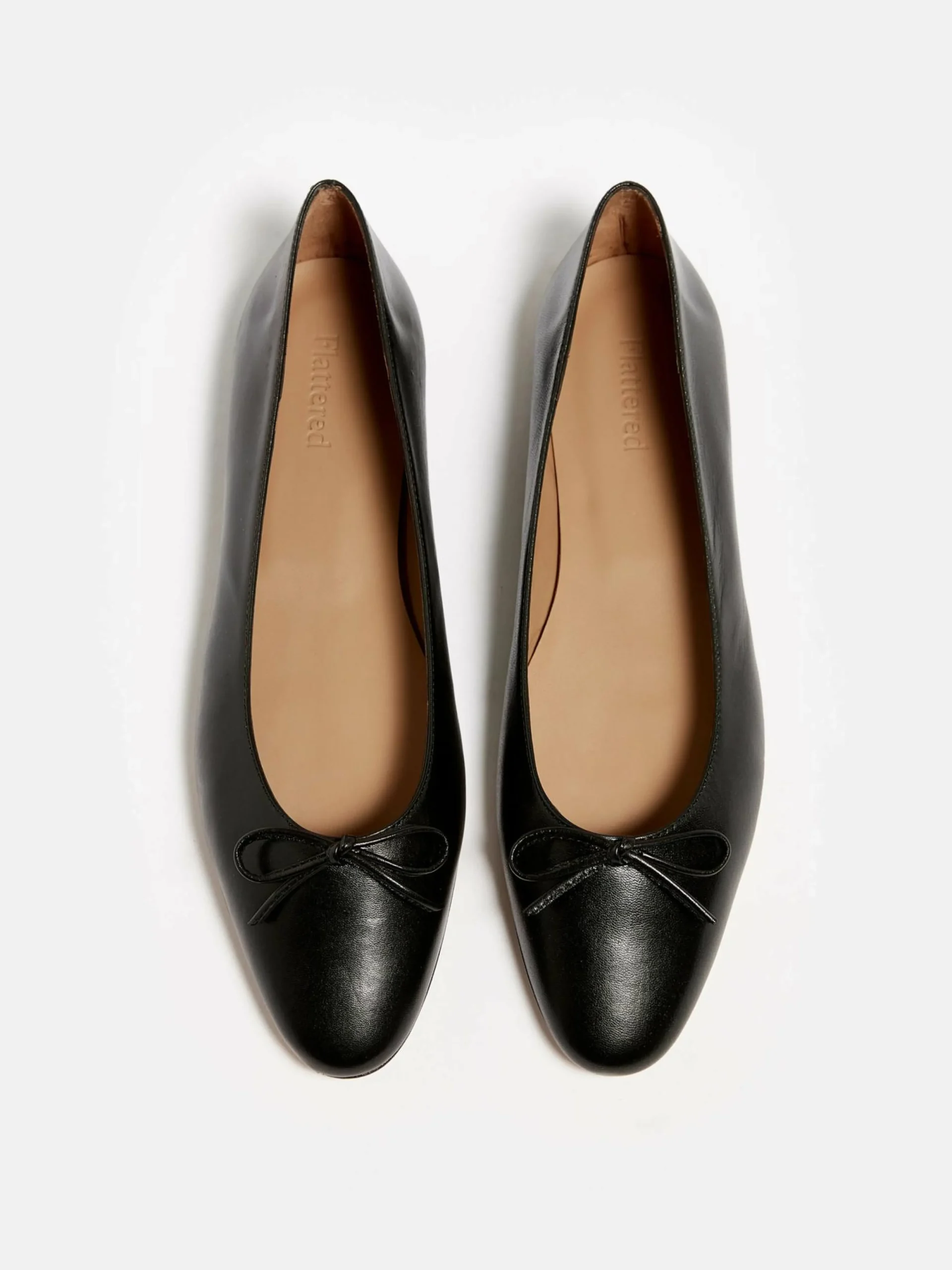 De Bodil is een elegante ballerina voor elke dag in fijn zwart leder met een decoratieve strik.Flattered combineert haar Scandinavische erfgoed met eco-vriendelijke praktijken om tijdloze handgemaakte schoenen te maken.