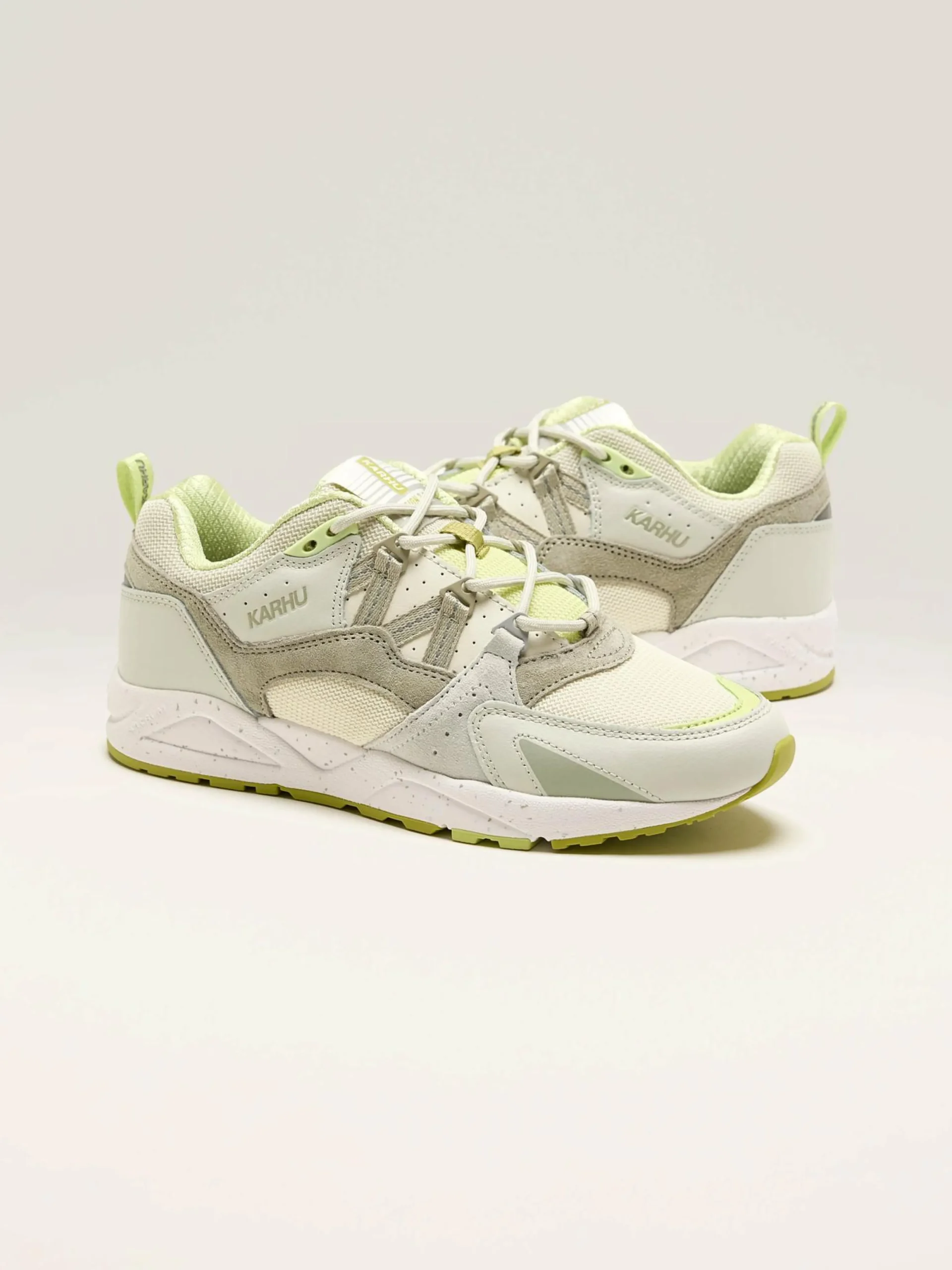 De Karhu Fusion 2.0 lifestyle sneakers hebben een bovenwerk van lederen, suède en waterafstotend mesh met iconische ontwerpdetails.