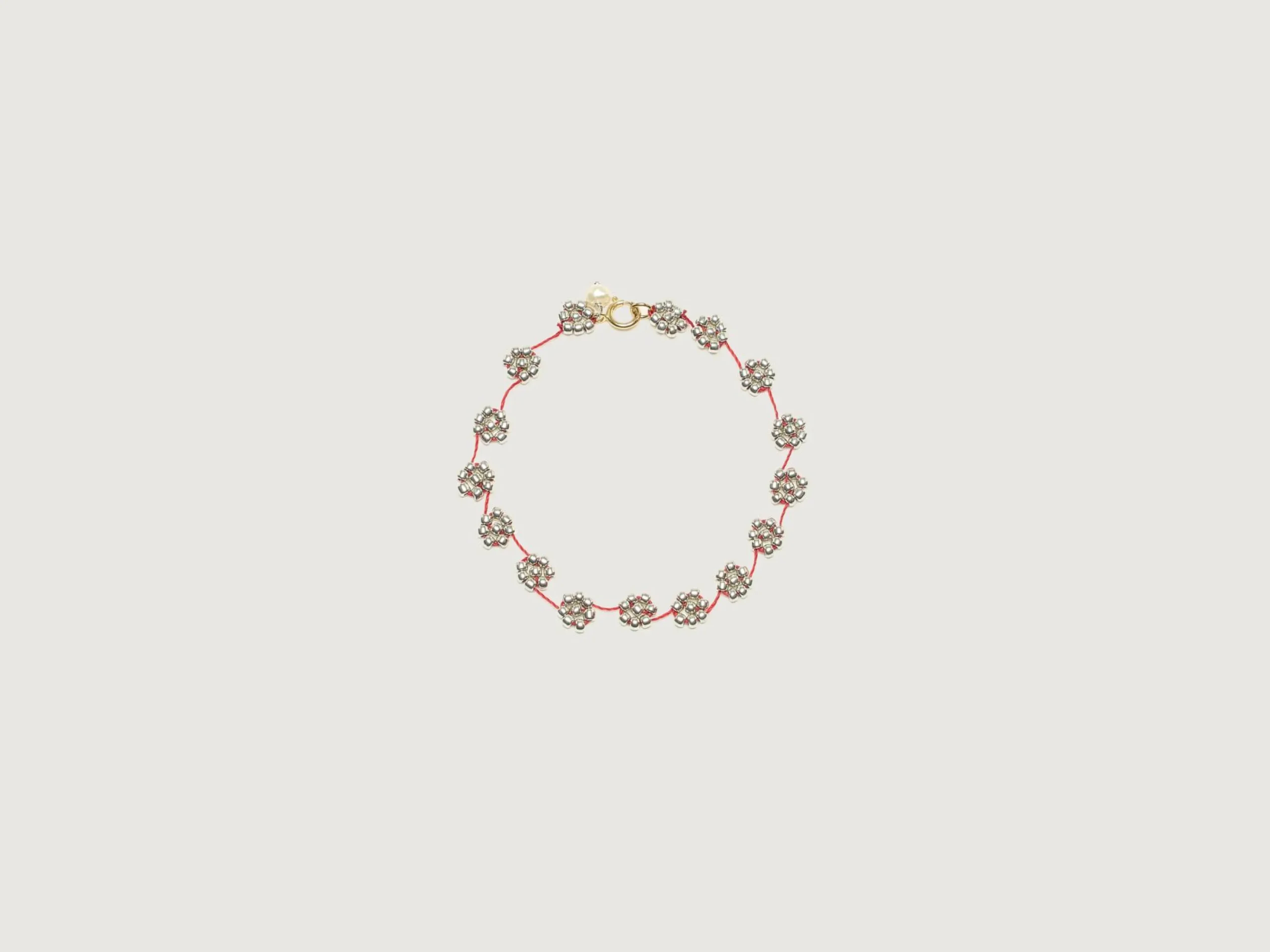 De prachtige Labro Fiori armband heeft glaskralen op een duurzaam nylondraad met een stevige sluiting.