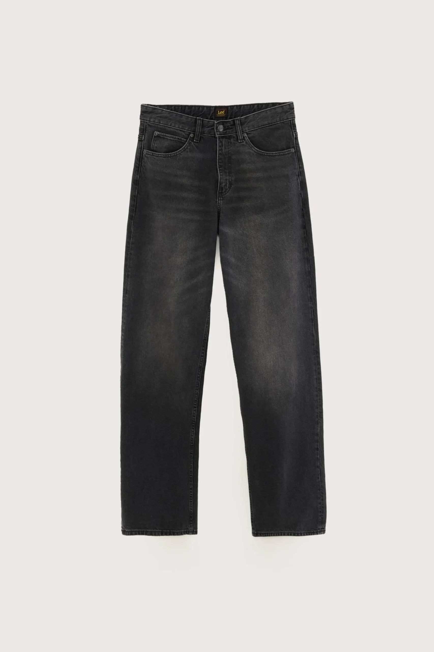 The Lee Rider Loose jeans feature a low-stretch cotton-lyocell blend in Charred Black with a loose fit.