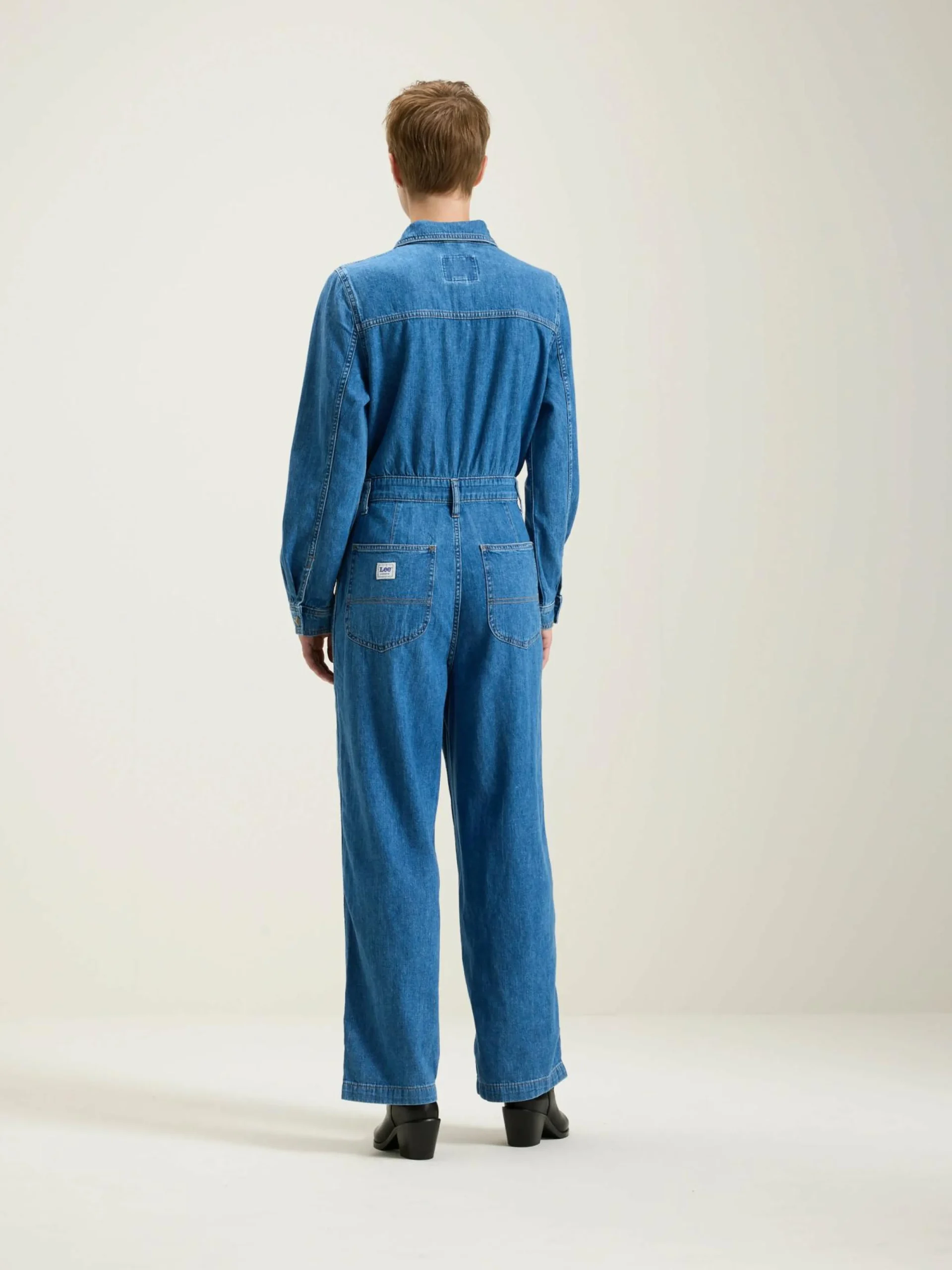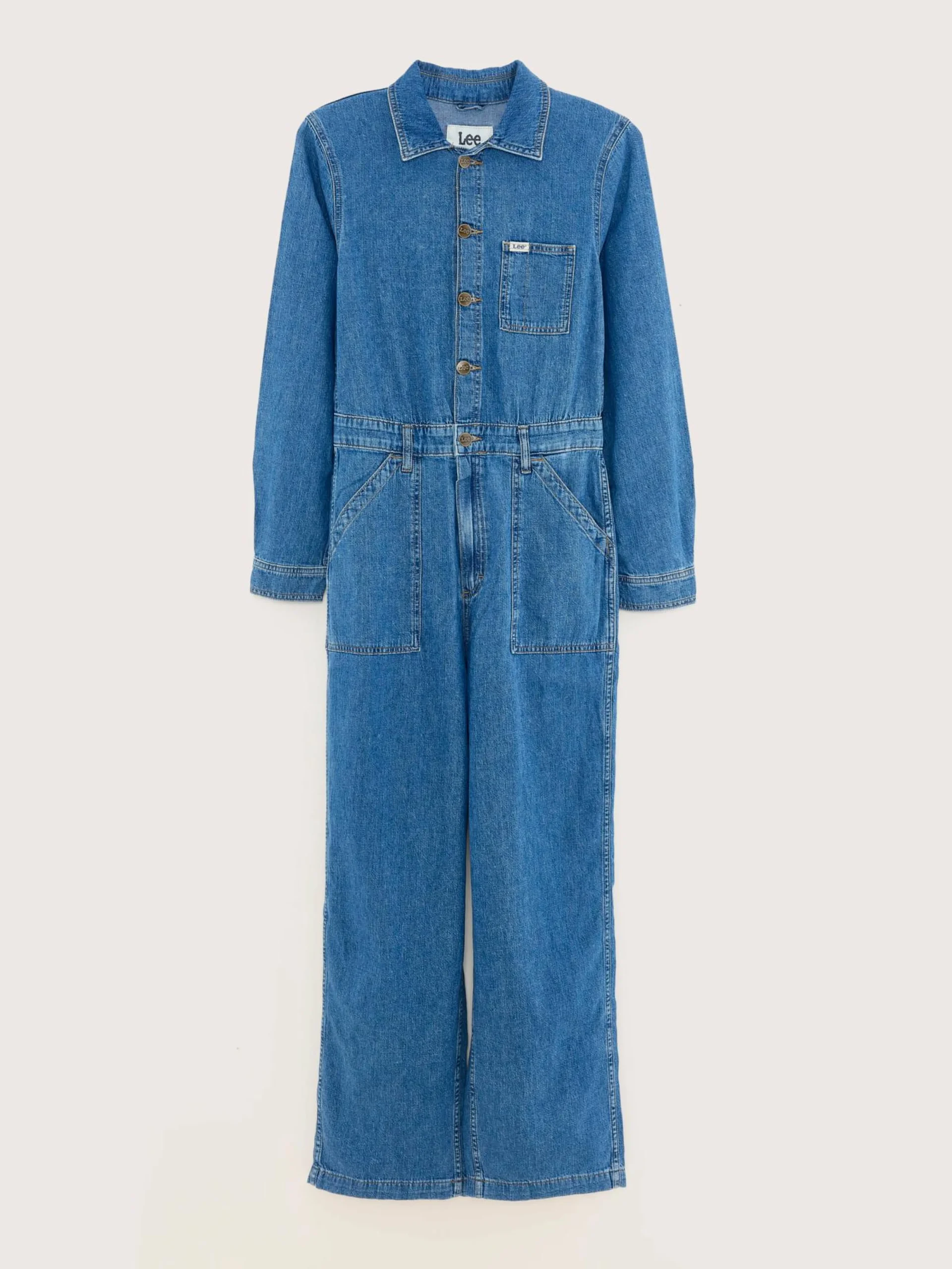 De op werkkleding geïnspireerde Lee Unionall jumpsuit van 100% katoen is licht en duurzaam, met koperen knopen en contrasterende stiksels.