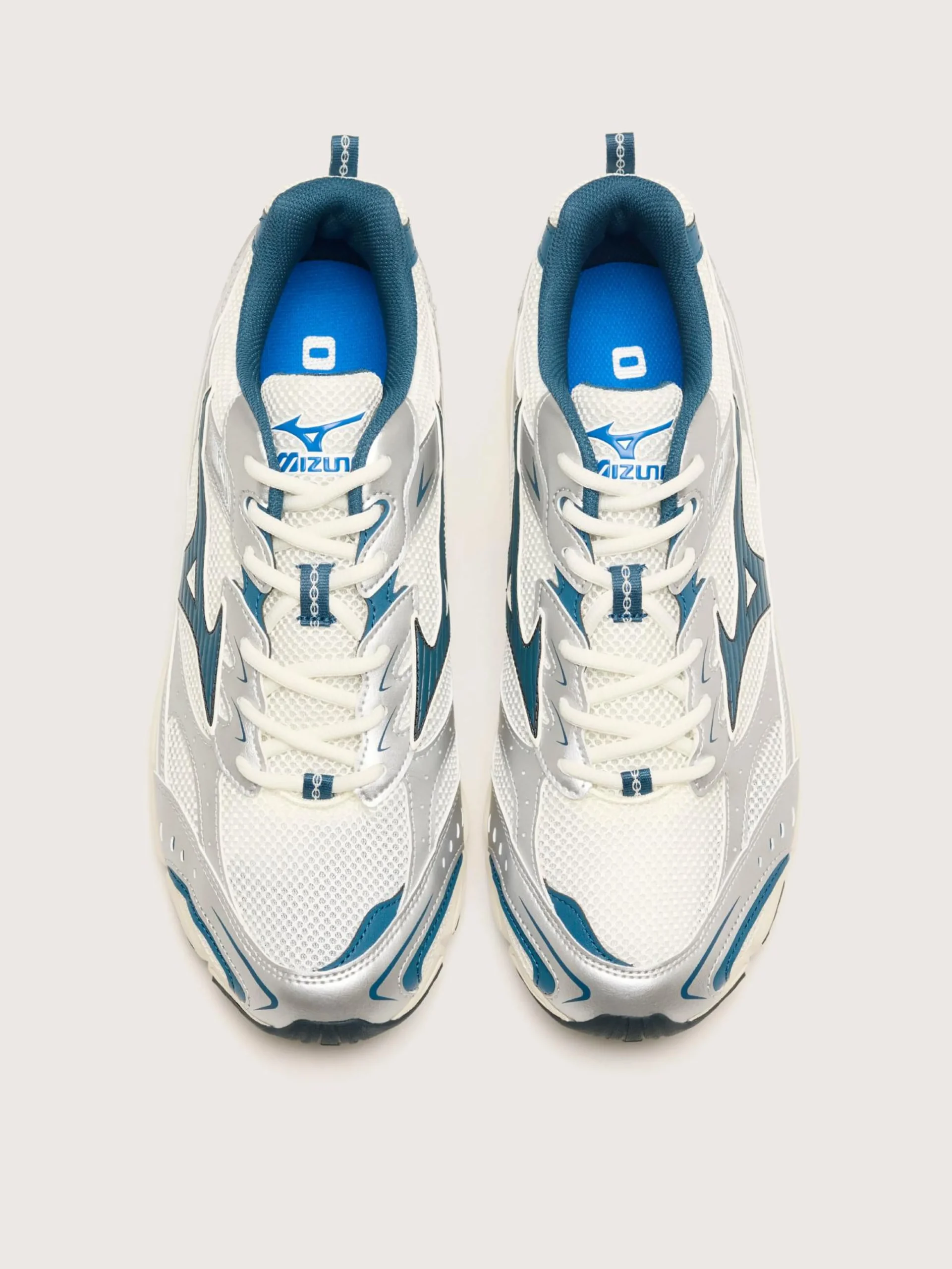 - Kleur: Mizuno sneeuwwit/blauw/zilver