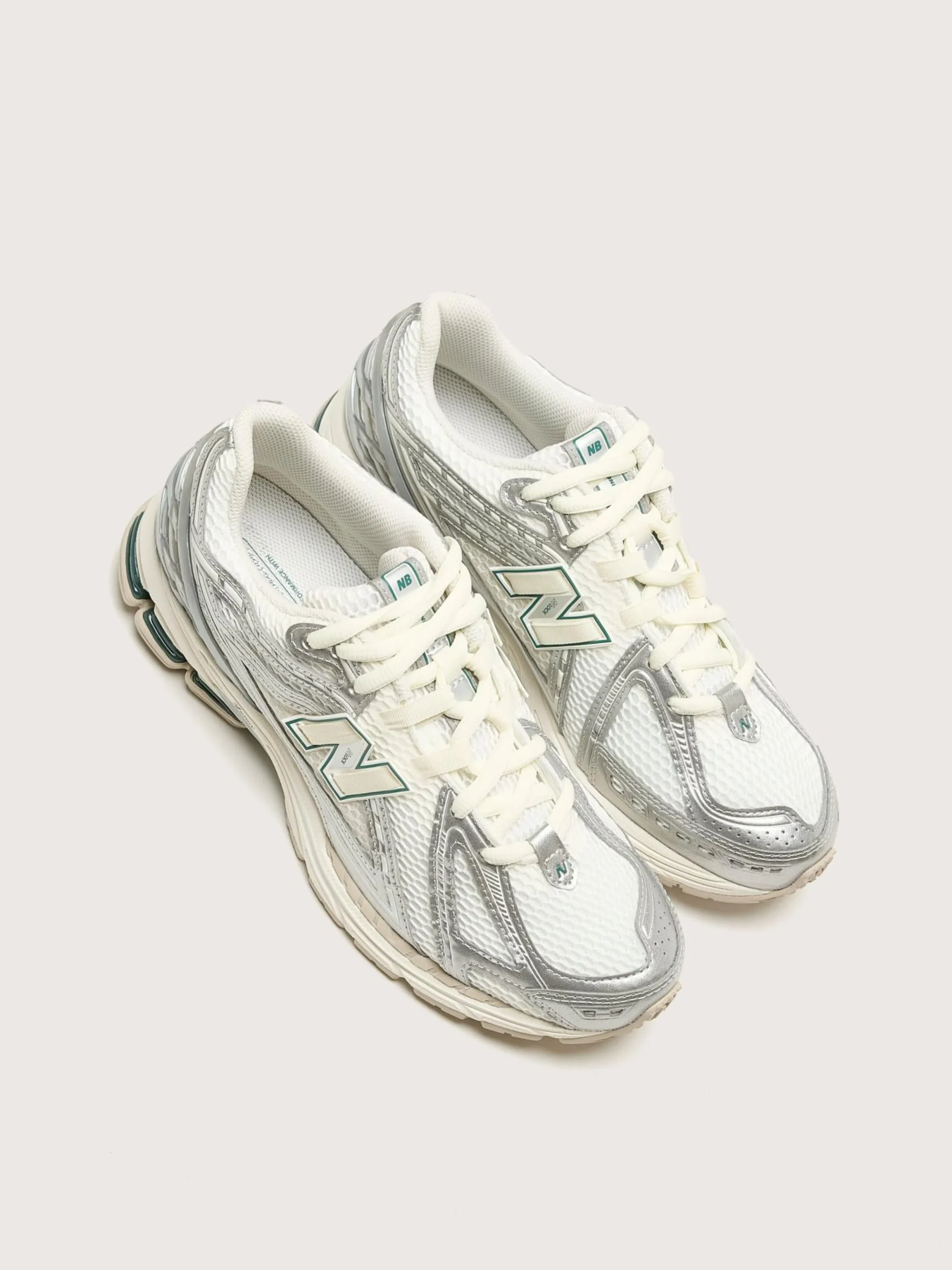 De New Balance 1906R hardloopschoenen hebben een bovenwerk van mesh met synthetische overlays en een dempende ABZORB middenzool en hiel.