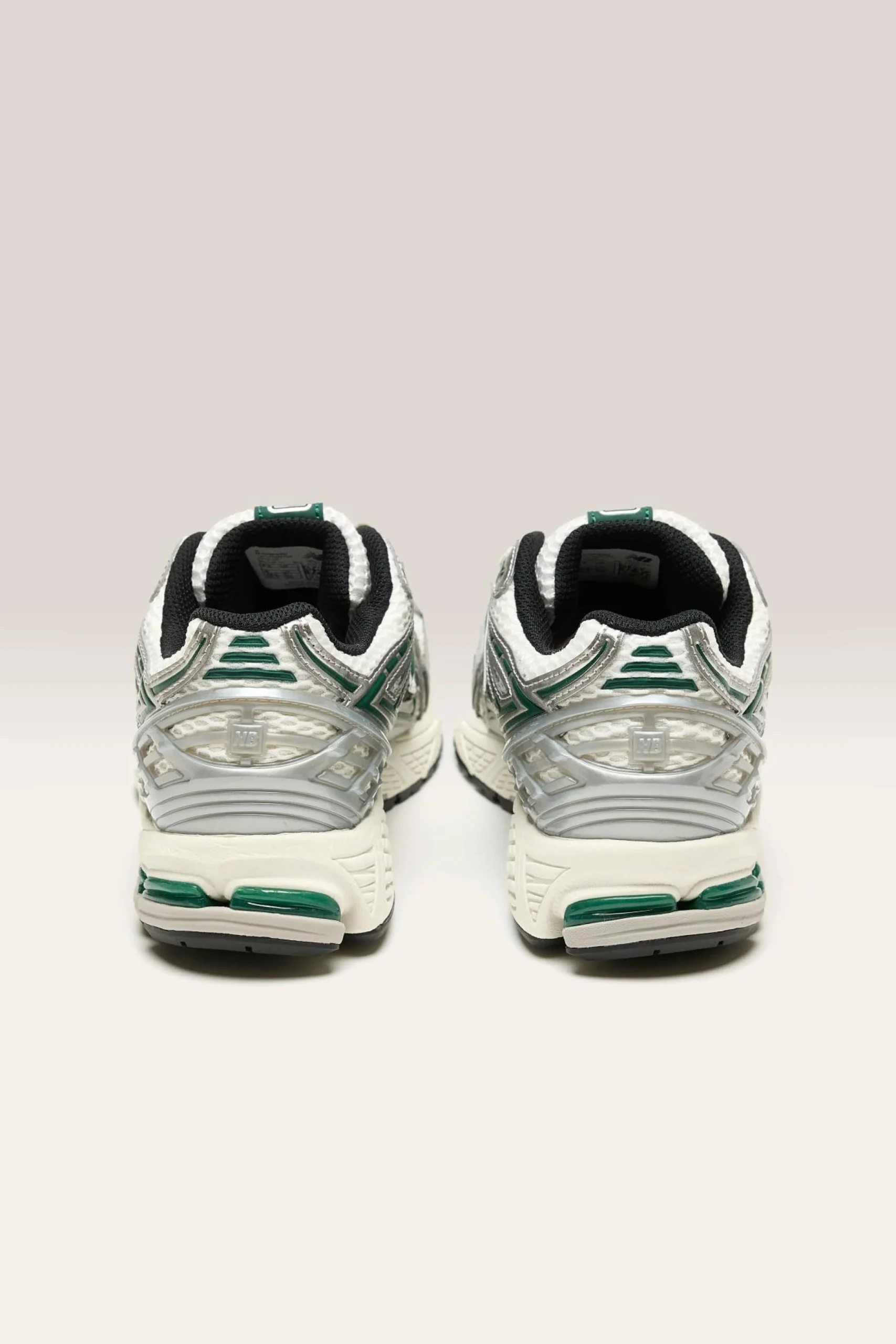 The New Balance 1906R lifestyle sneaker has a mesh upper with synthetic overlays and a specialized, cushioned midsole and heel.