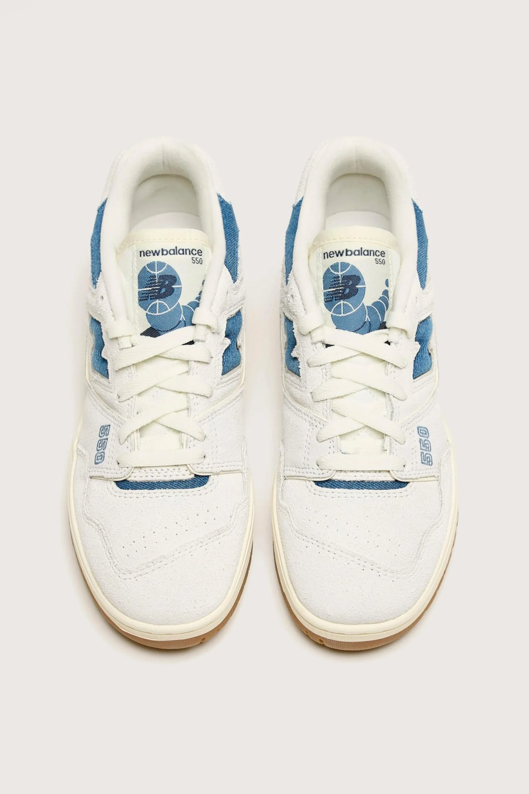 The New Balance BBW550 low-top lifestyle sneakers feature a dependable leather, synthetic, and mesh upper design.