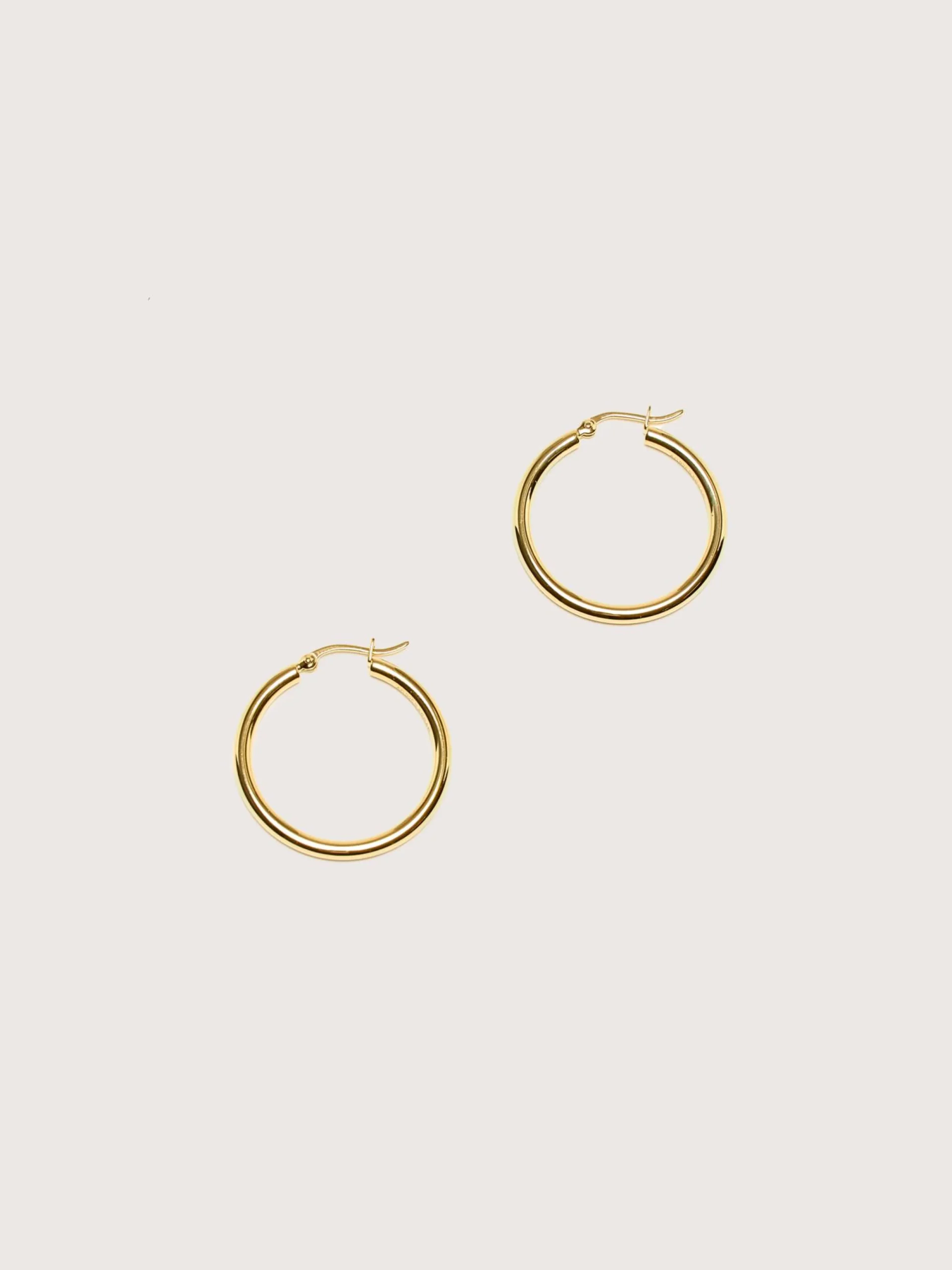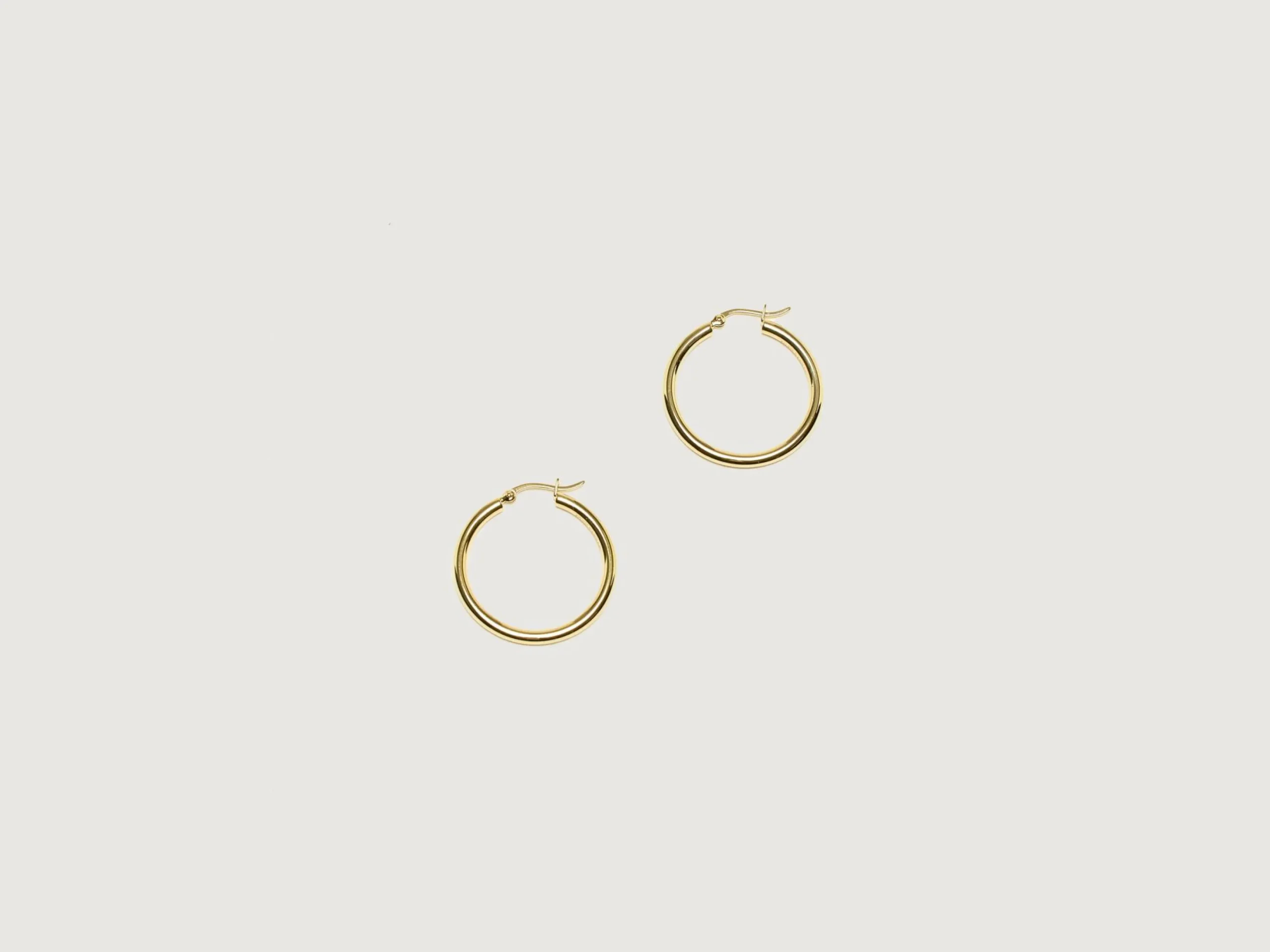 De RAGBAG Oda Grote Oorringen zijn vervaardigd uit 18k goudgeplateerd sterling zilver.