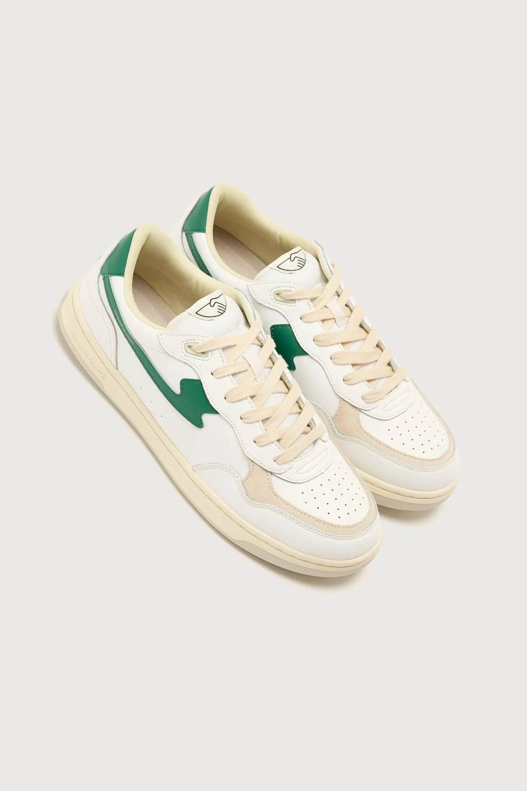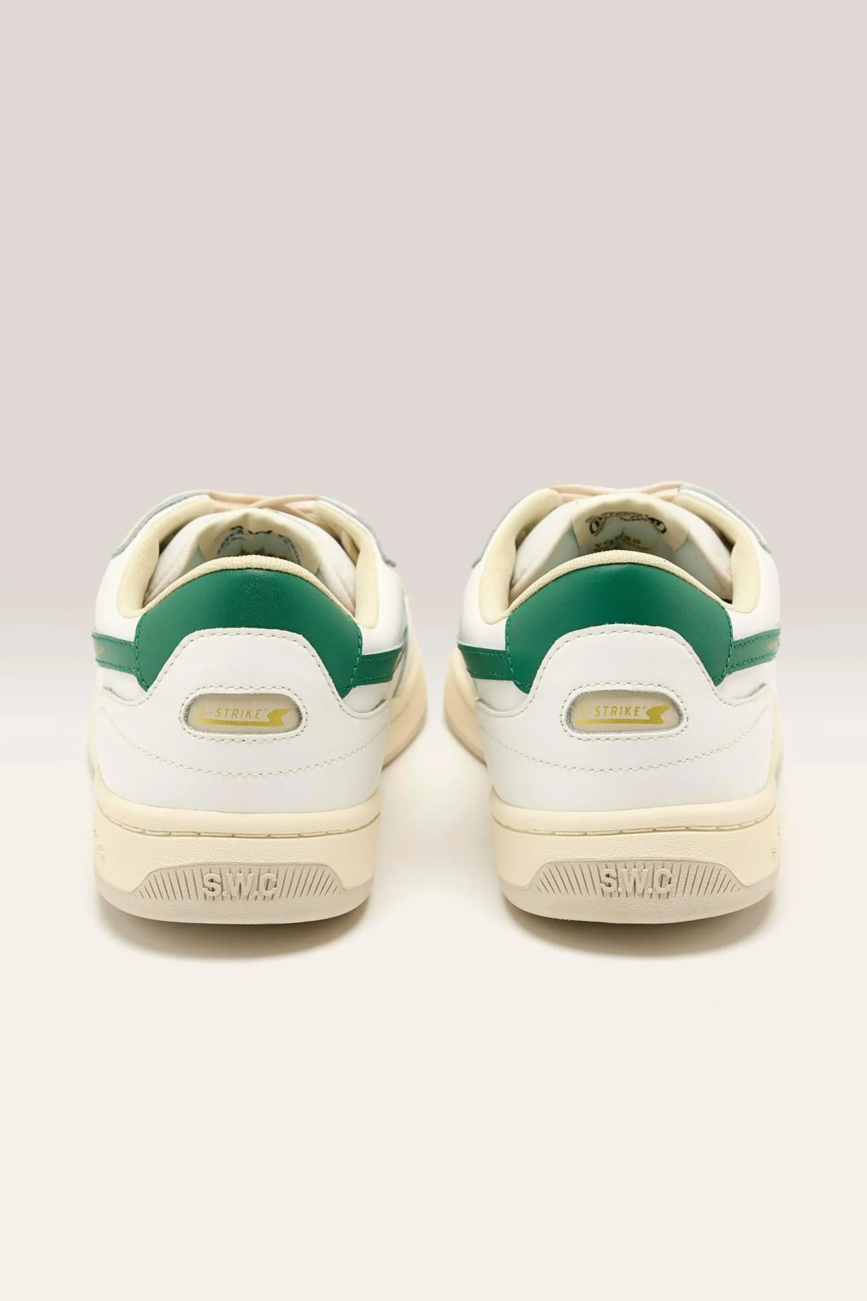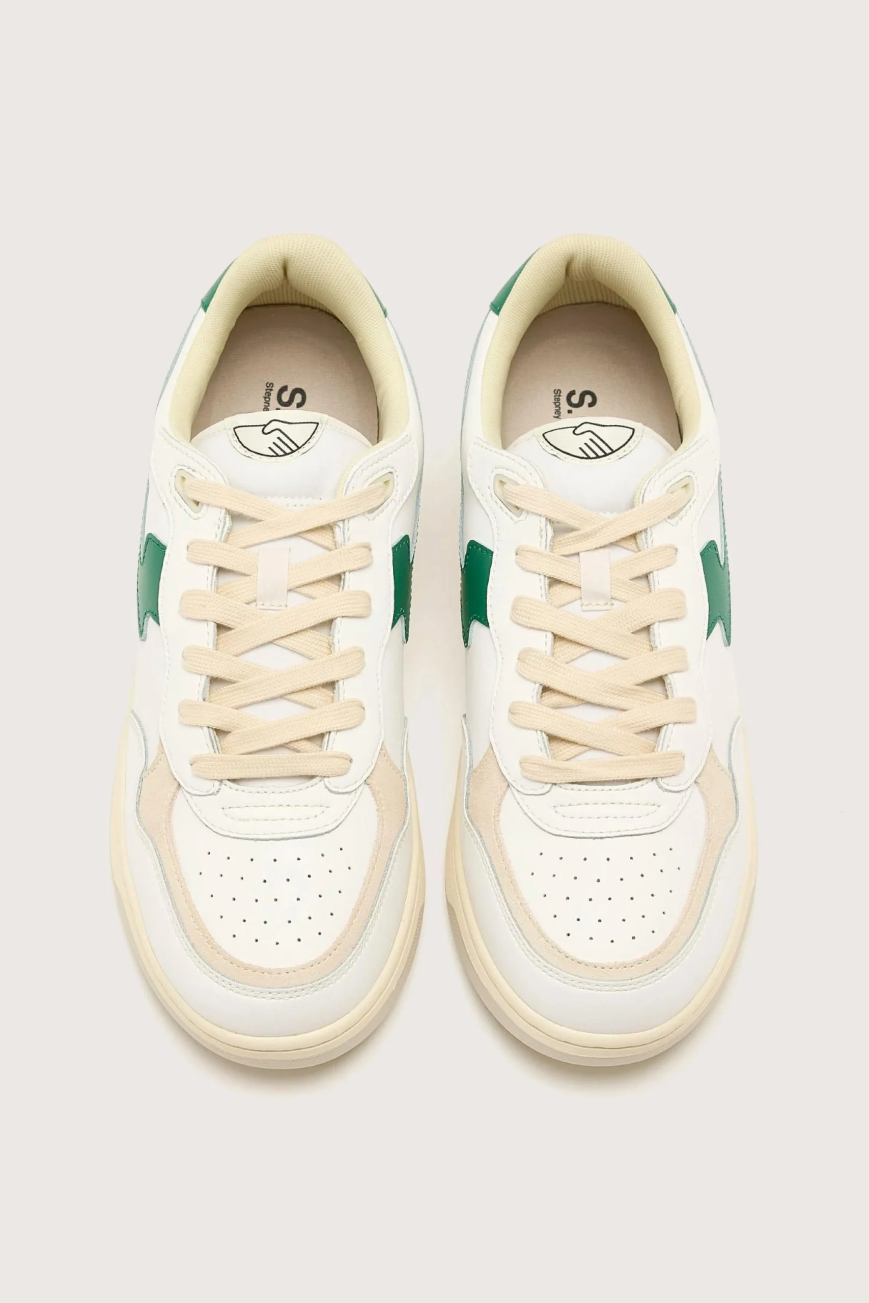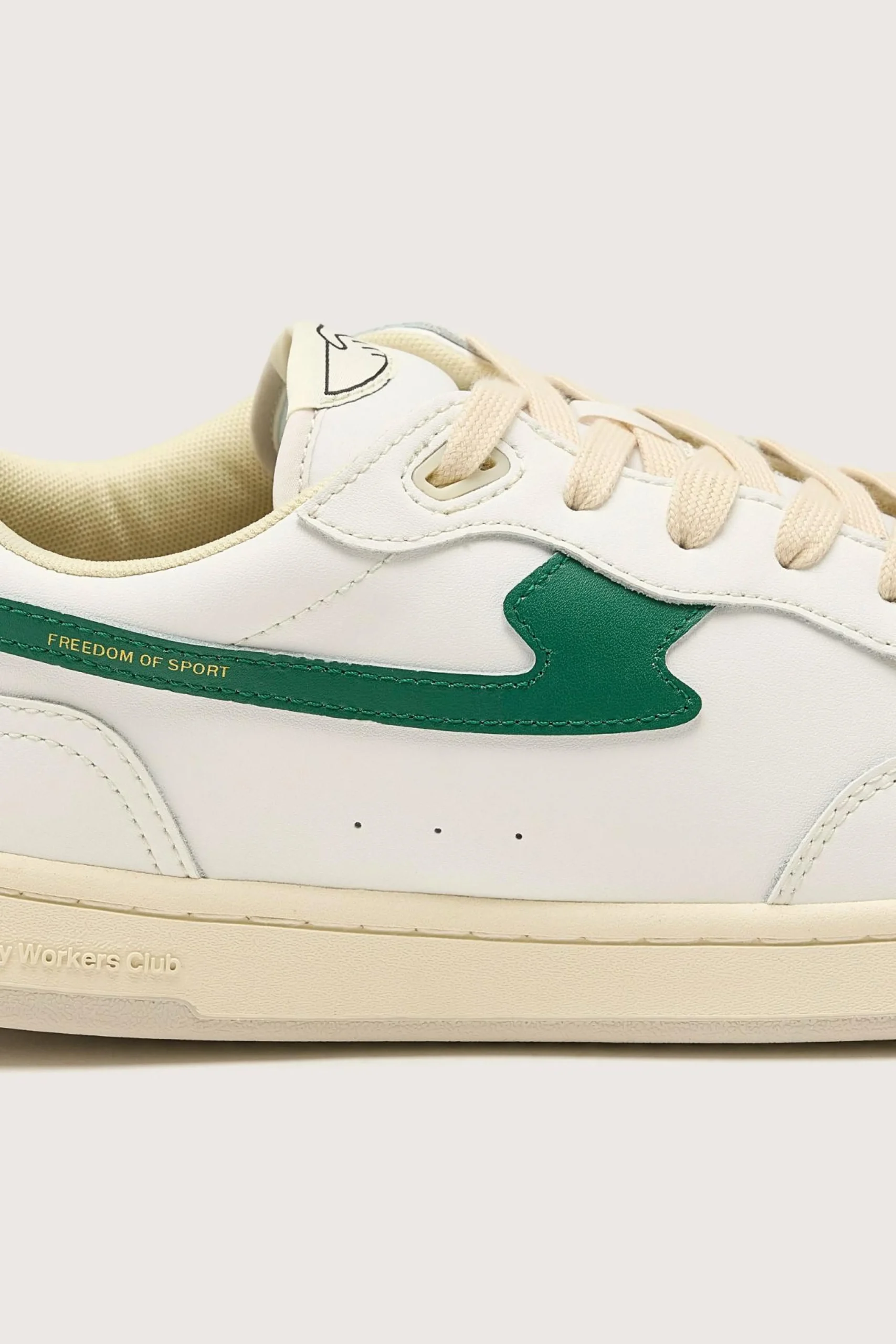 The Stepney Workers Club Pro-Cup 01 everyday sports sneaker features a white leather paneled upper and cupsole construction.