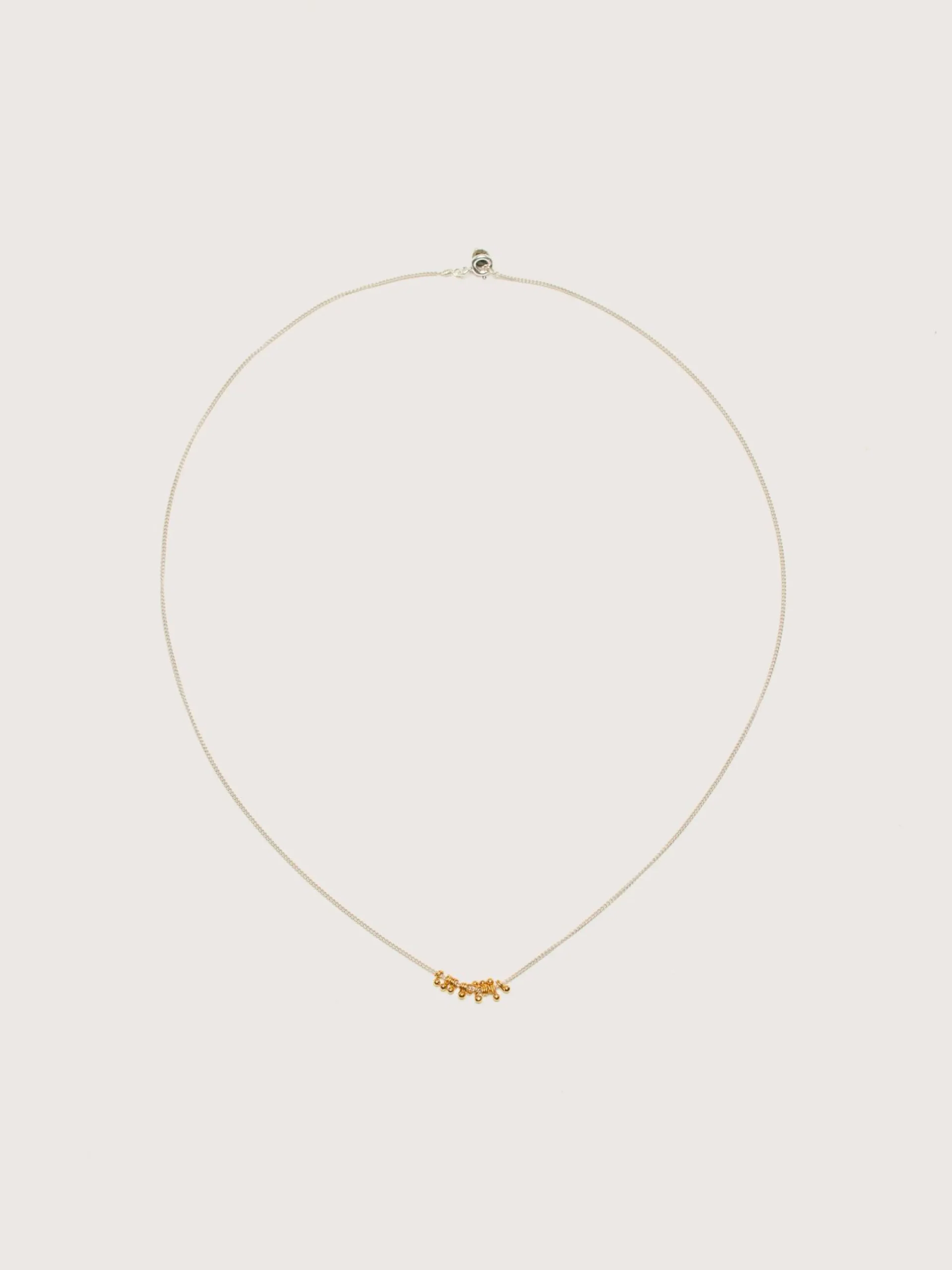 De GilberGilbert Bubble ketting is een lange zilveren ketting met gouden bolletjes.