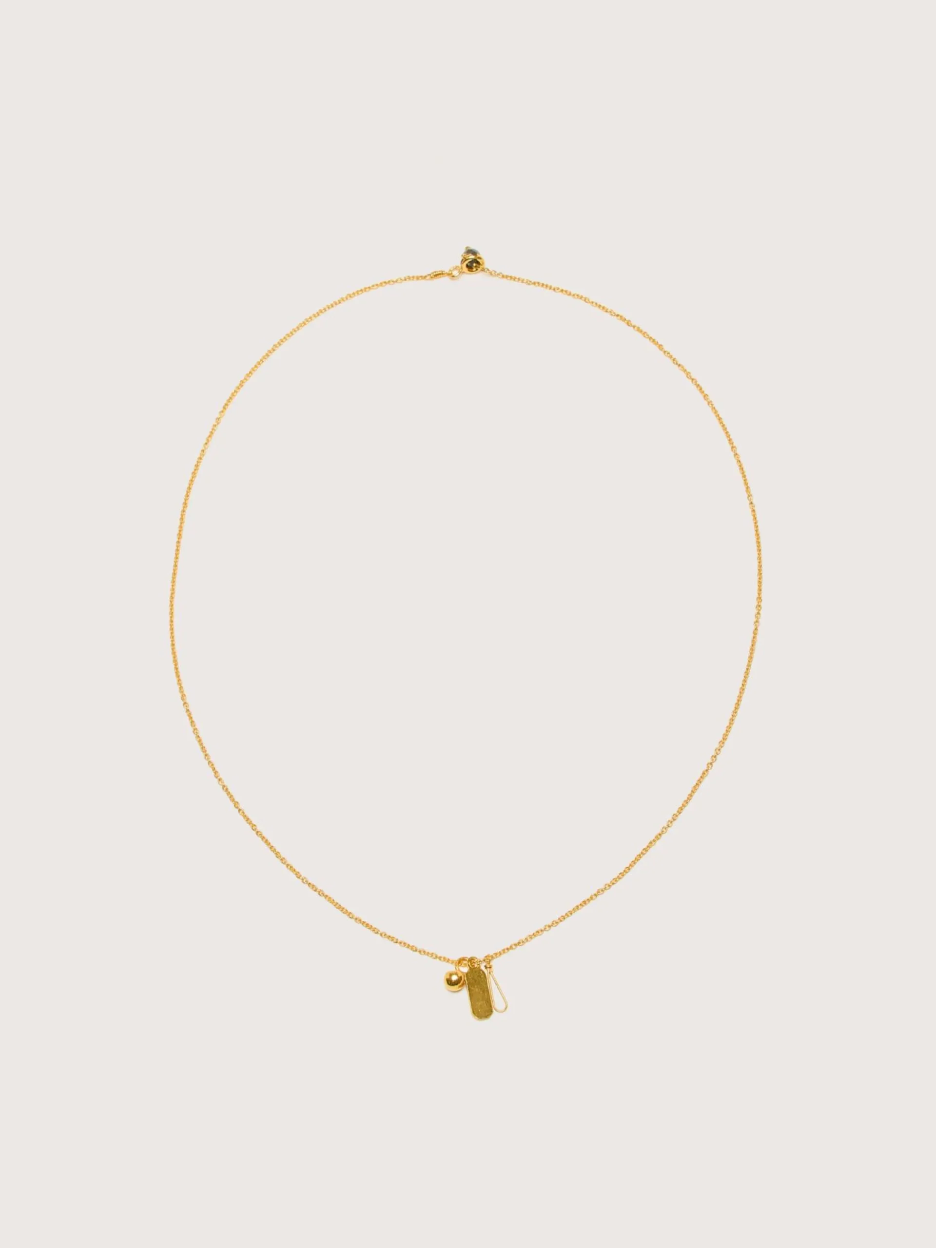 The GilbertGilbert Golden Pendant necklace features a long chain with golden pendants.