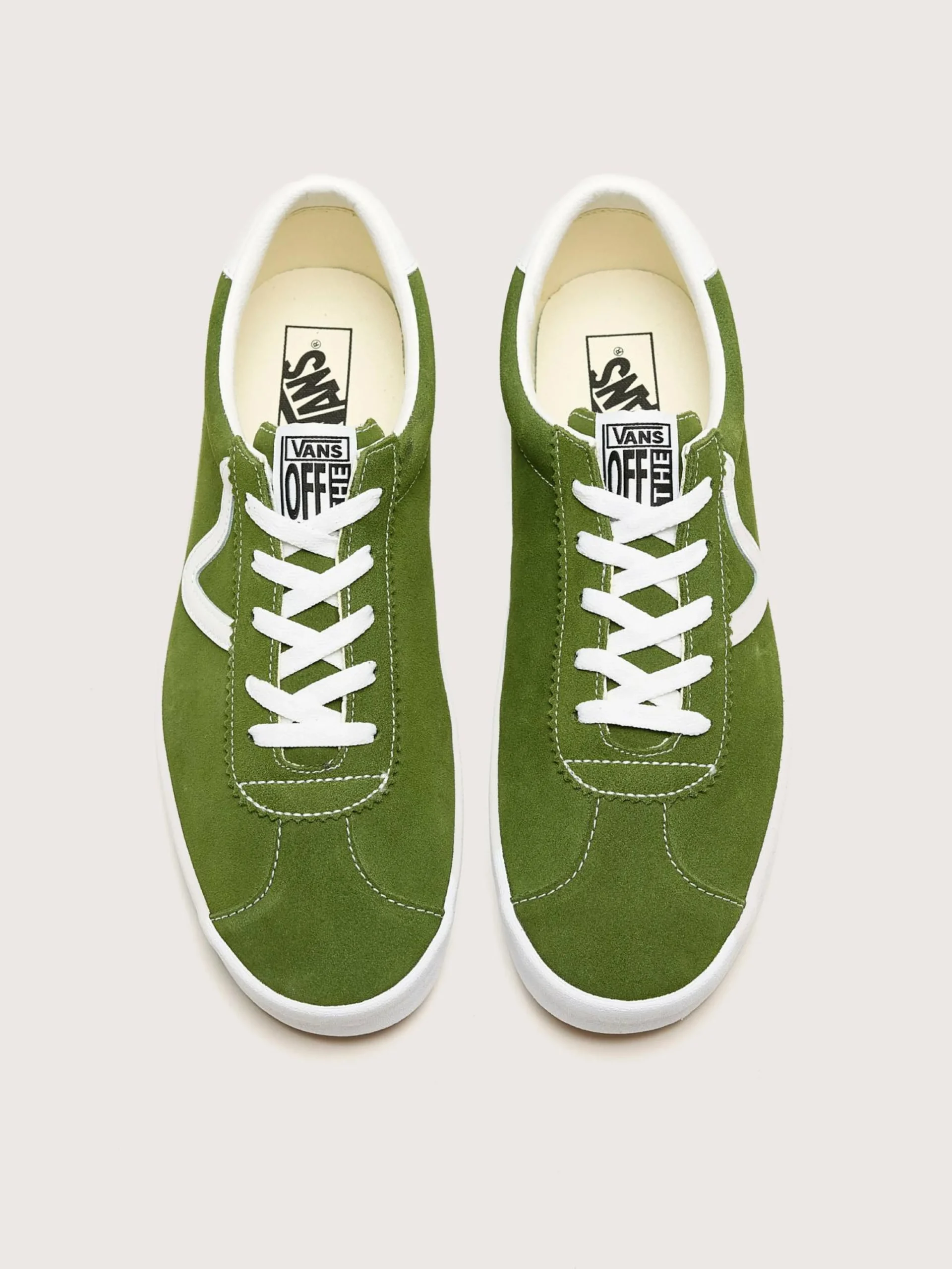 De Vans Sport Low schoenen hebben een lage open kraag, een tweekleurig suède bovenwerk met lederen accenten en een old-school logolabel.