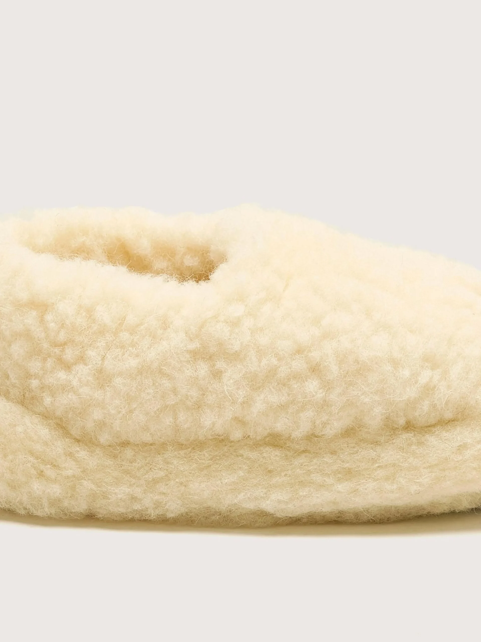 The Yoko Wool Siberian Slippers, crafted in soft wool, have non-slip outsoles.